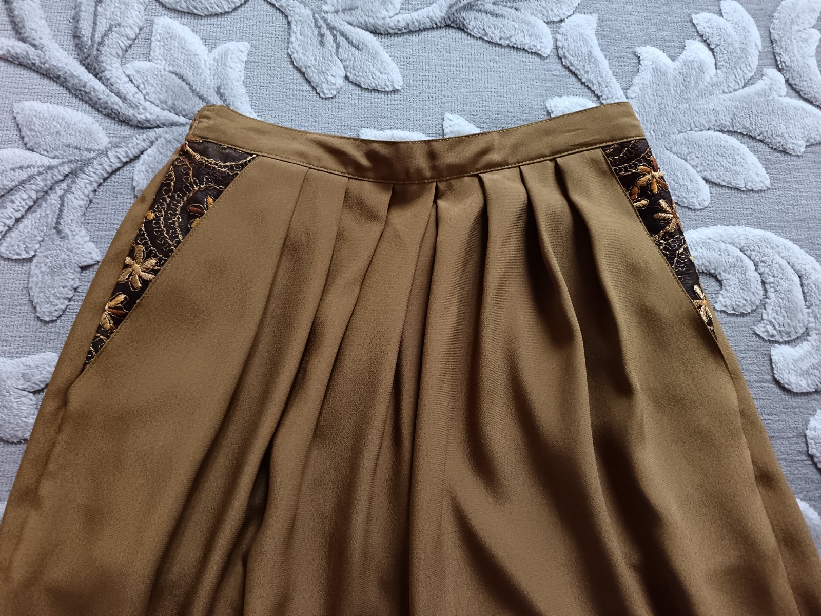 Pás je na gumu. Šírka pása 32cm. Dĺžka sukne je 76,5cm. Cena je bez poštovného.