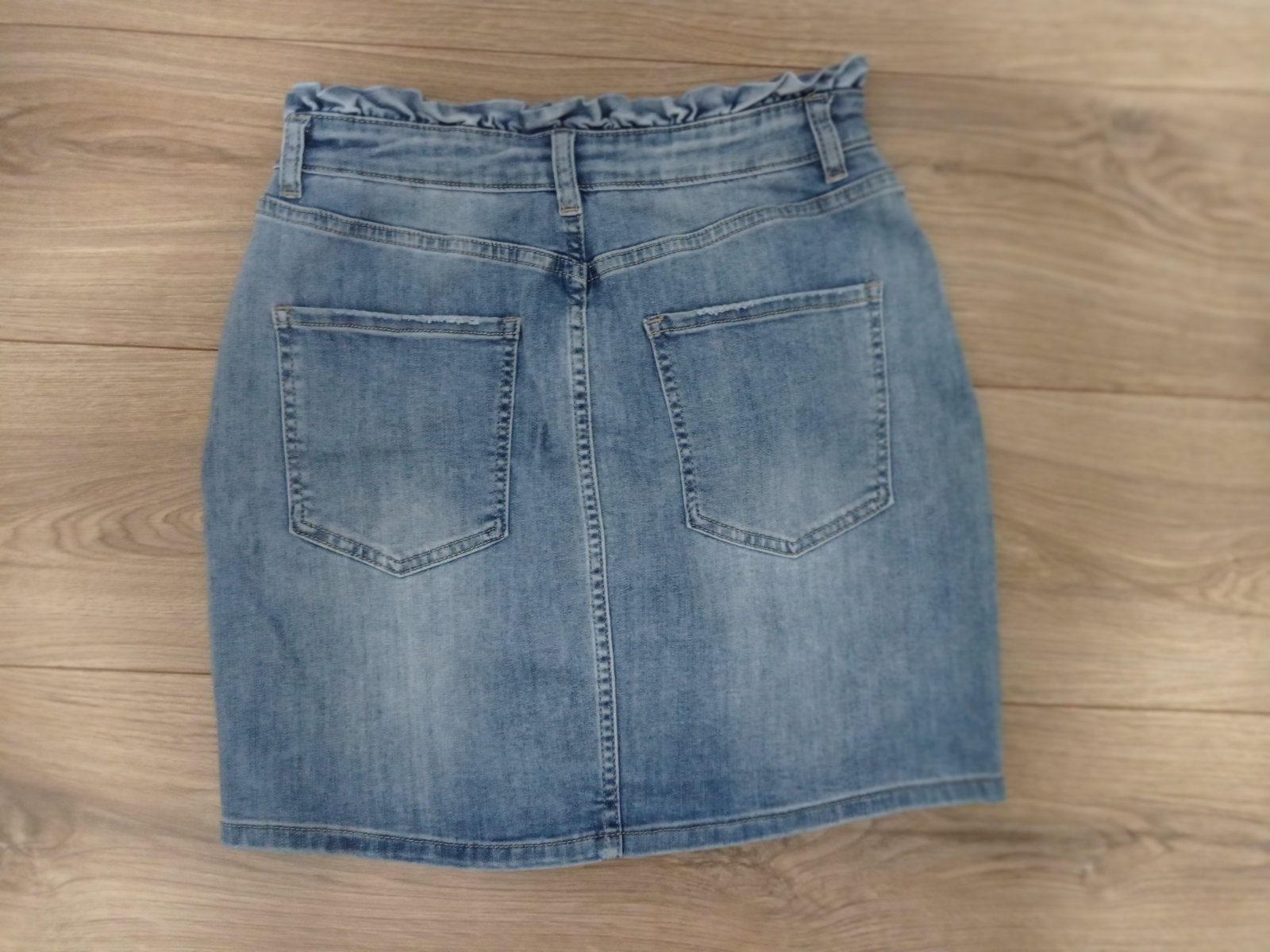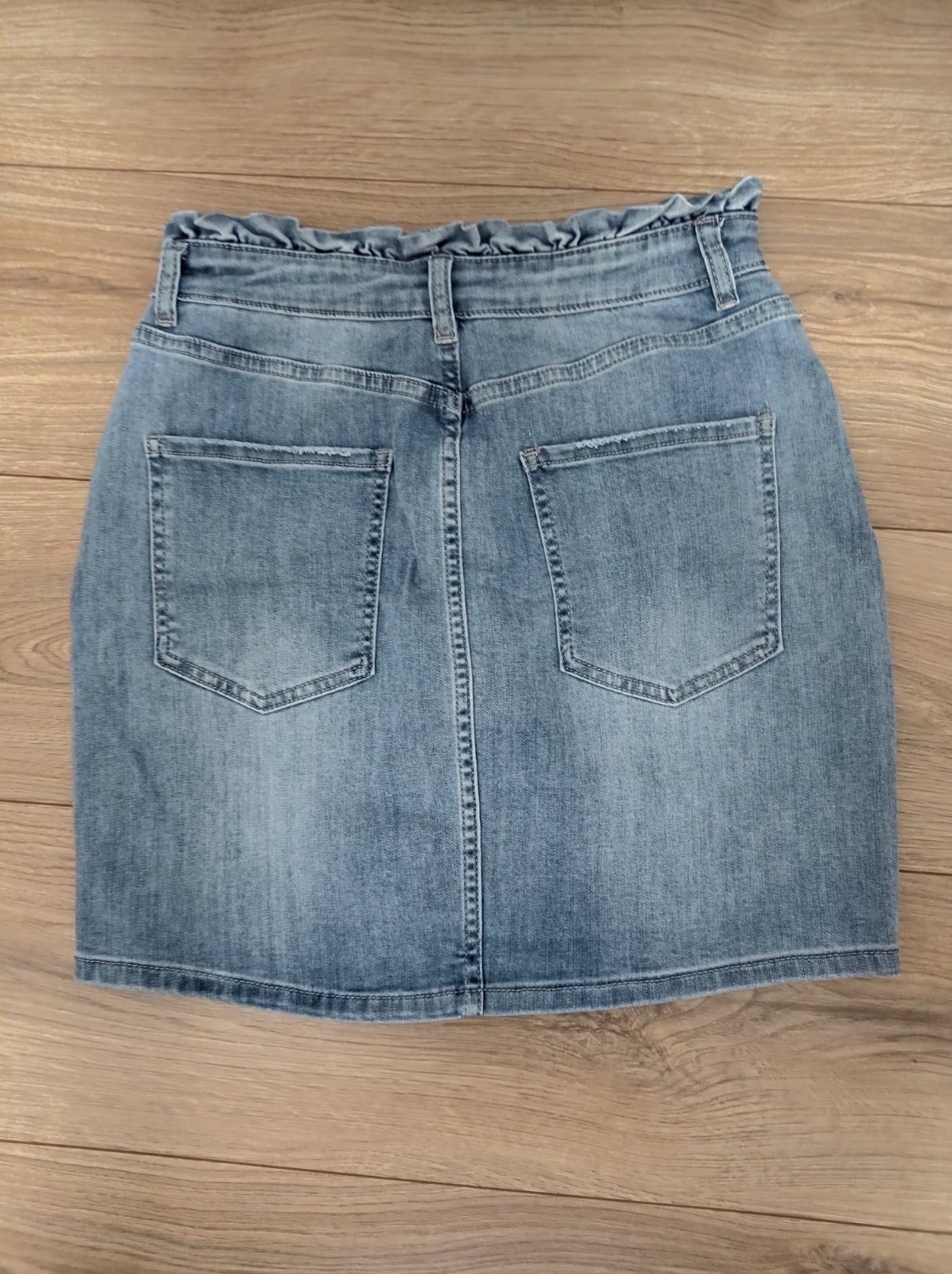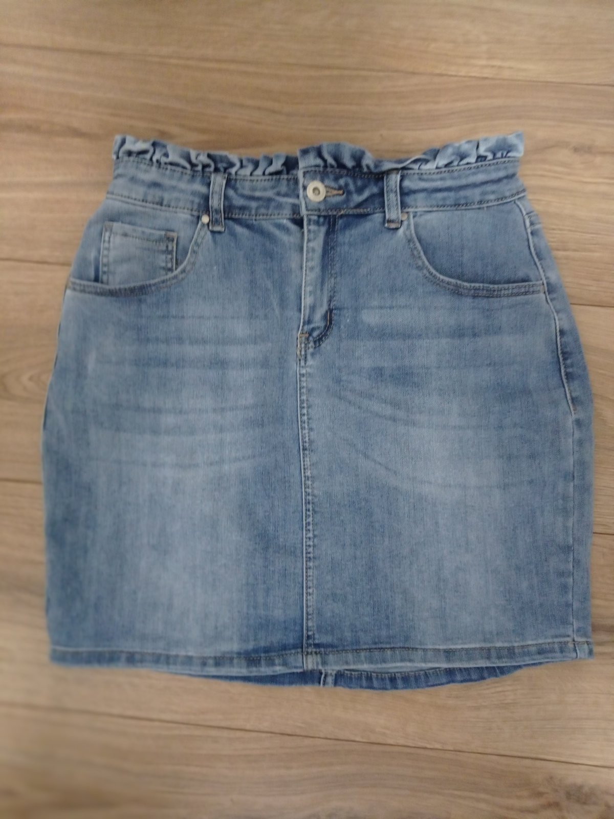 Sukňa je vo výbornom stave, z kvalitnej mäkkej rifľoviny, v páse ozdobená malým volánikom. Veľkosť M, premerajte. Pás 35 cm x 2, povolí do cca 42 cm x 2, dĺžka 43 cm.