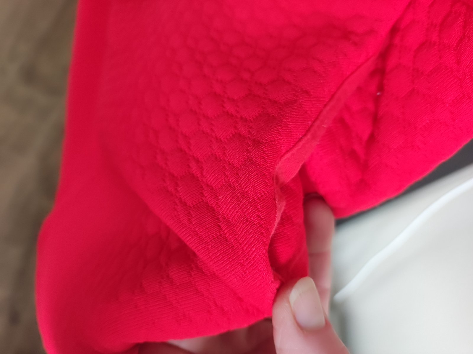 Ponúkam nenosené len skladované....miery vo fóte .materiál uplet....farba nie je taká žiarivo červená.