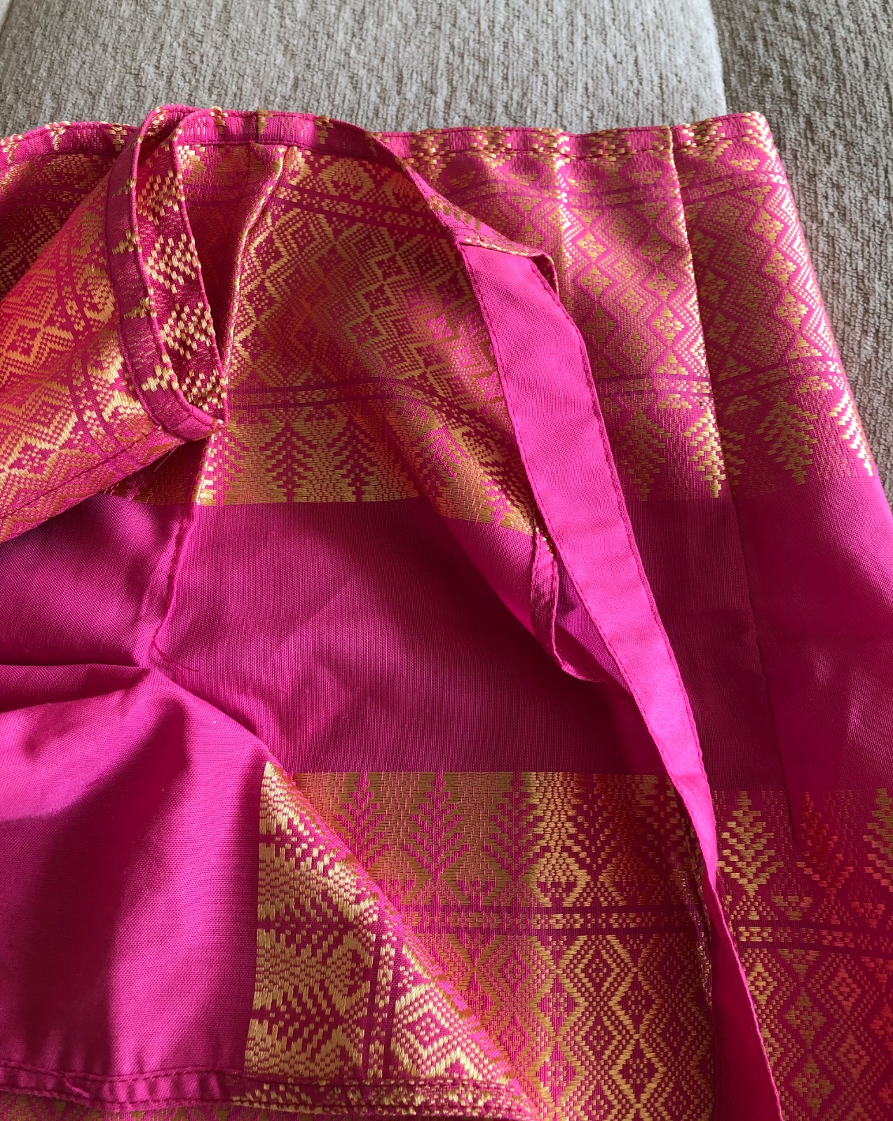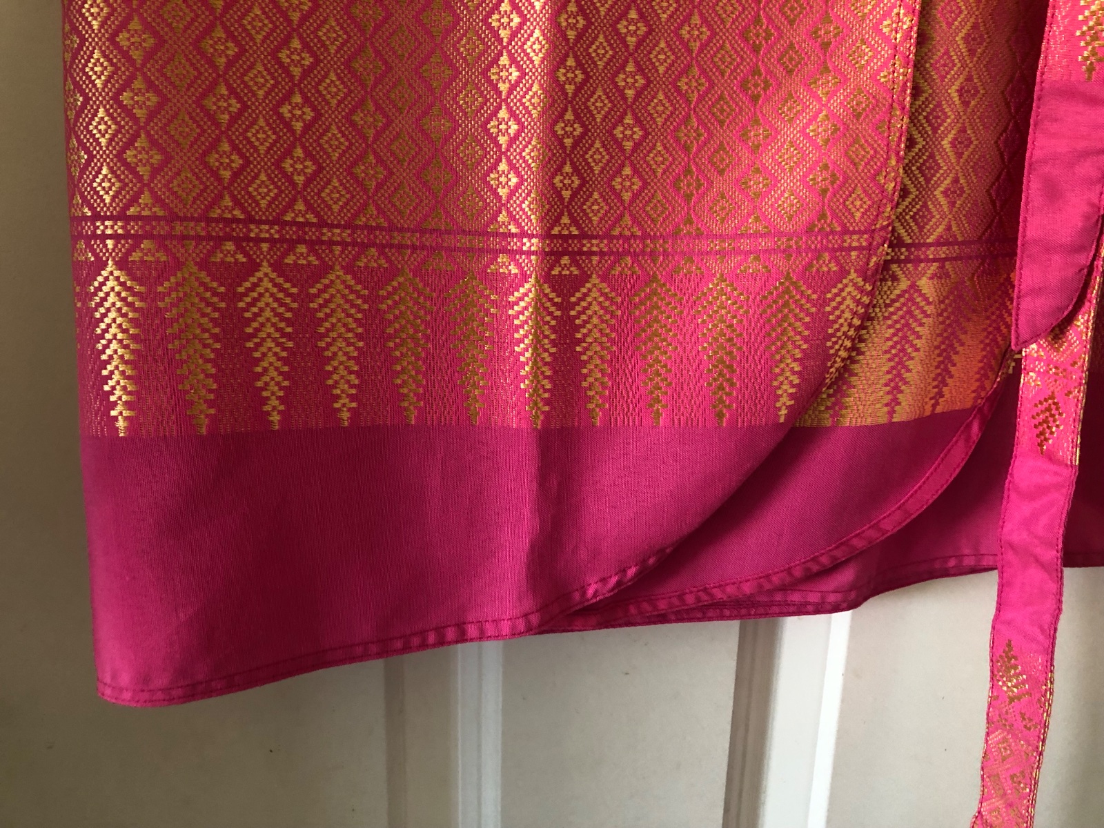 - 1x nosená ružovo - zlatá zavinovacia sukňa