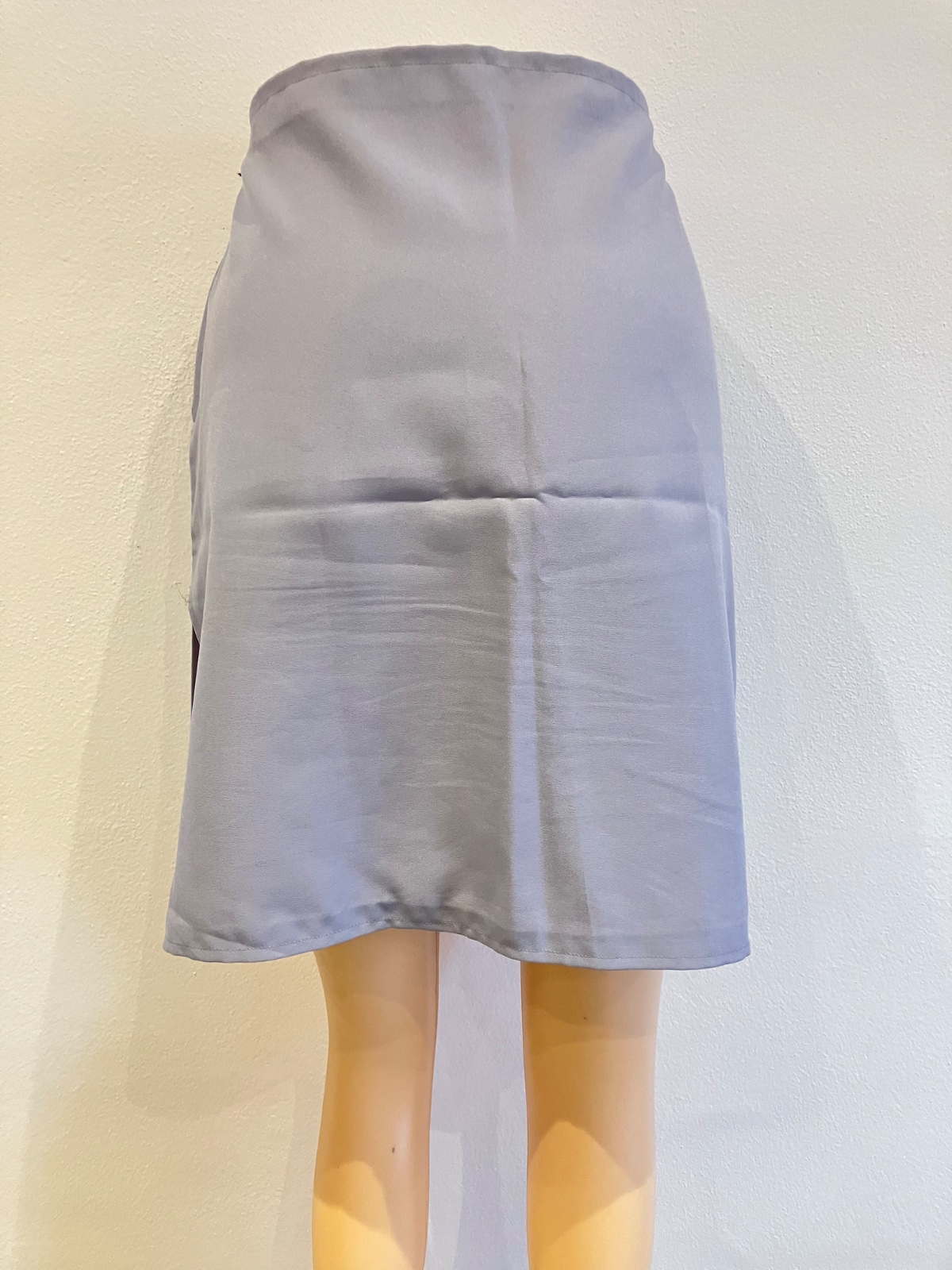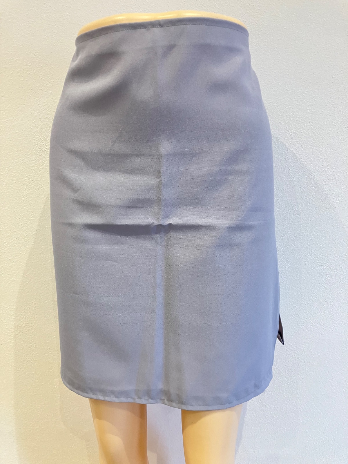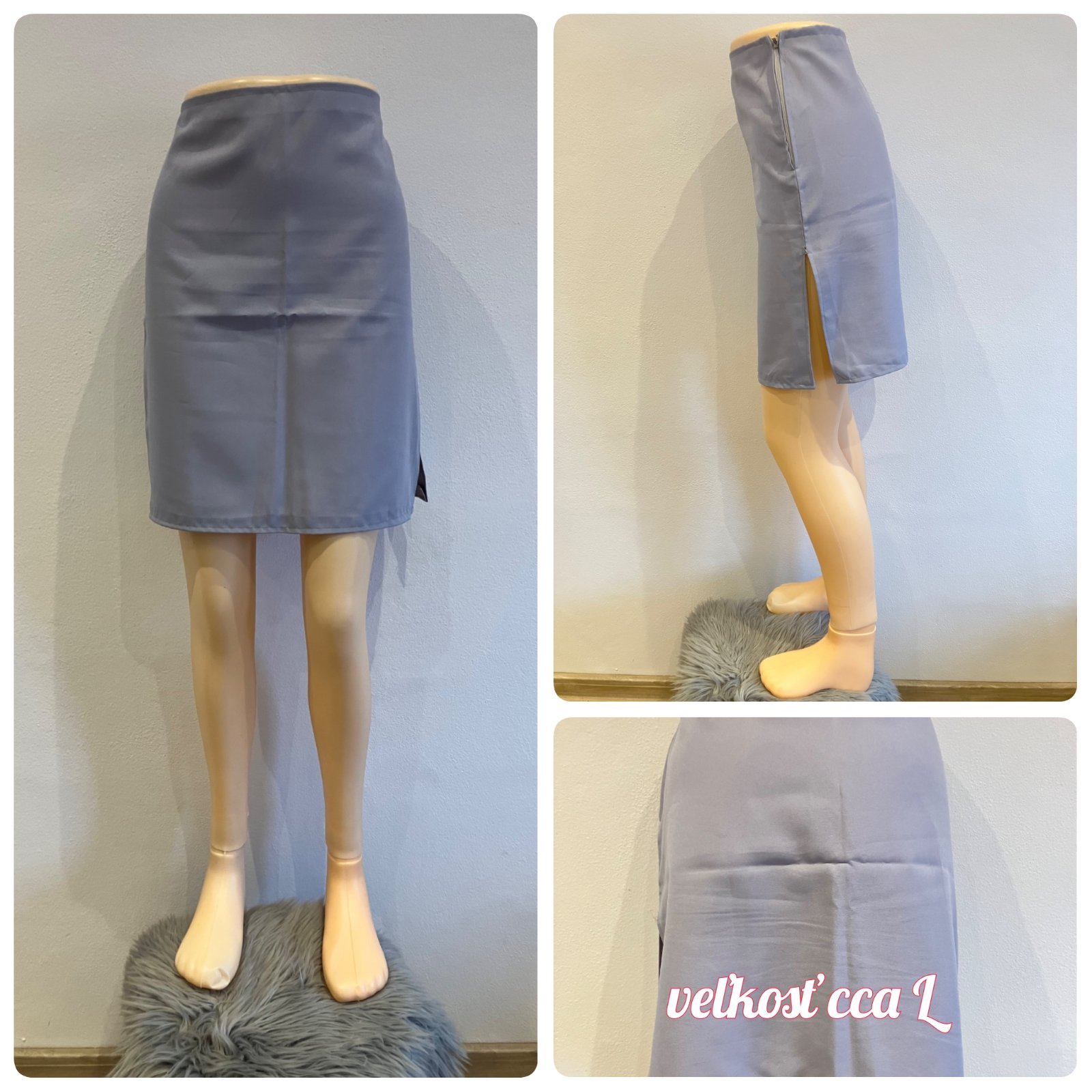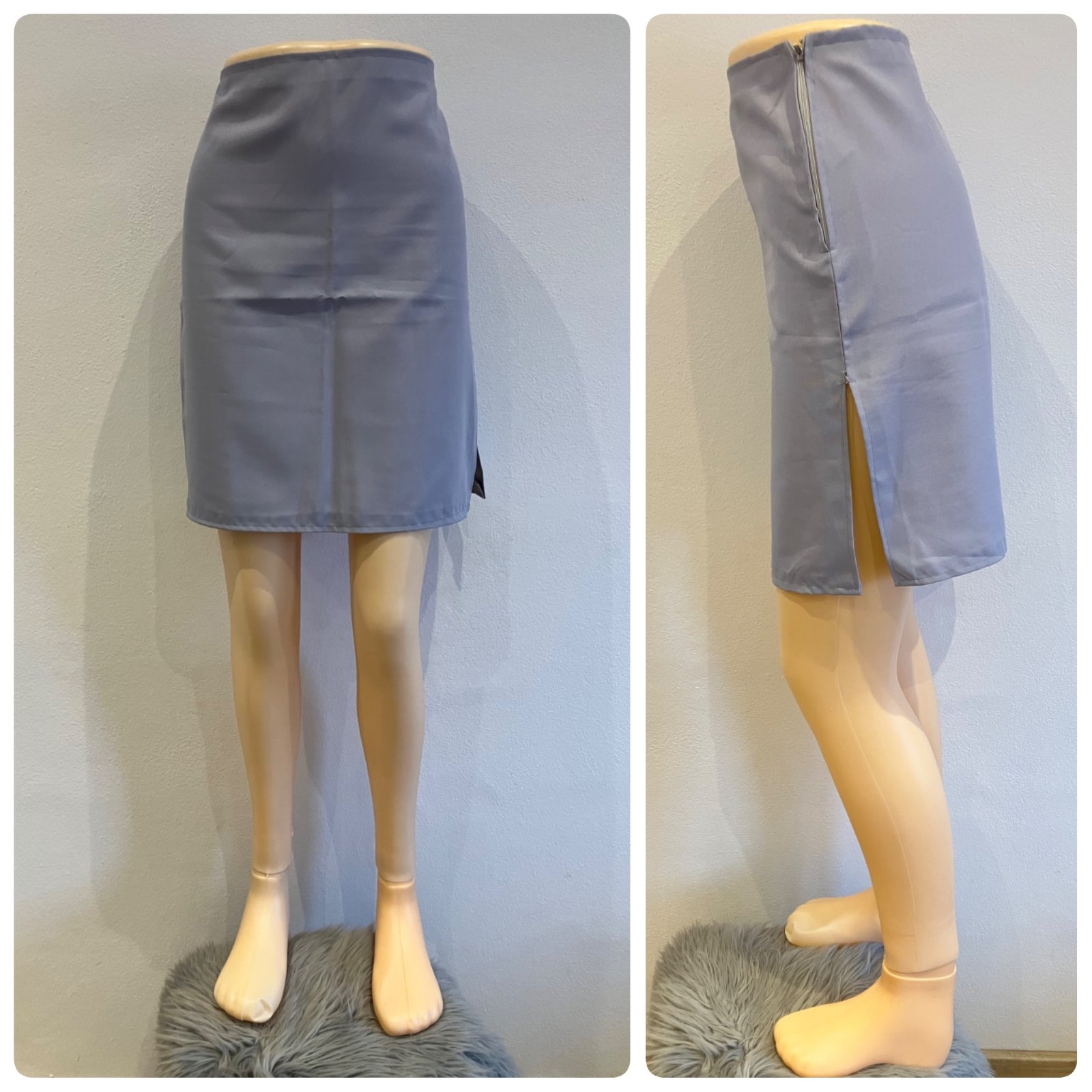 Dámska sukňa sivá, zapínanie na boku na zips, s decentným rázporkom, nie je elastická, tenká. Veľkosť: cca L.