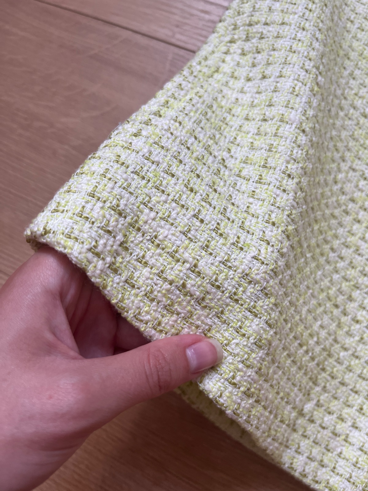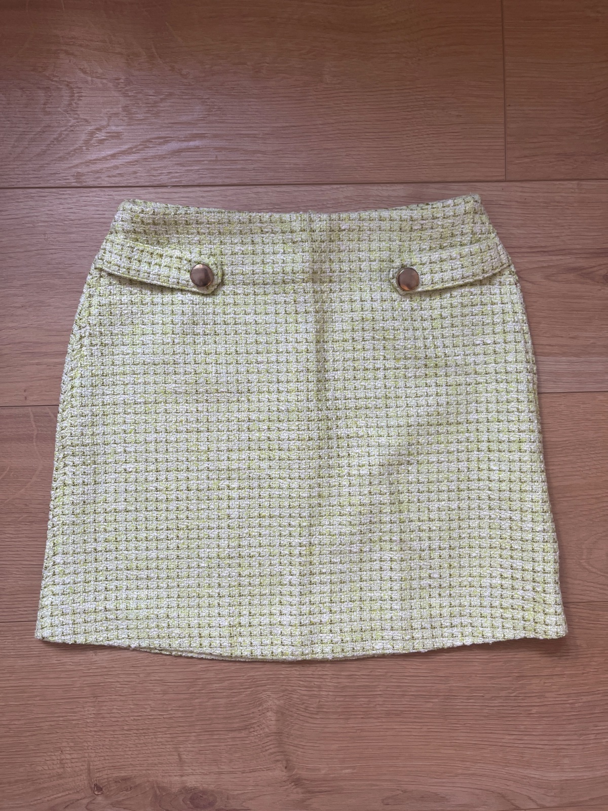 Nová, len bez visačky. Gombíky držia ale odporúčam prešiť. Farba je žlto-zelená, dĺžka je 39cm, v páse má 33cm.