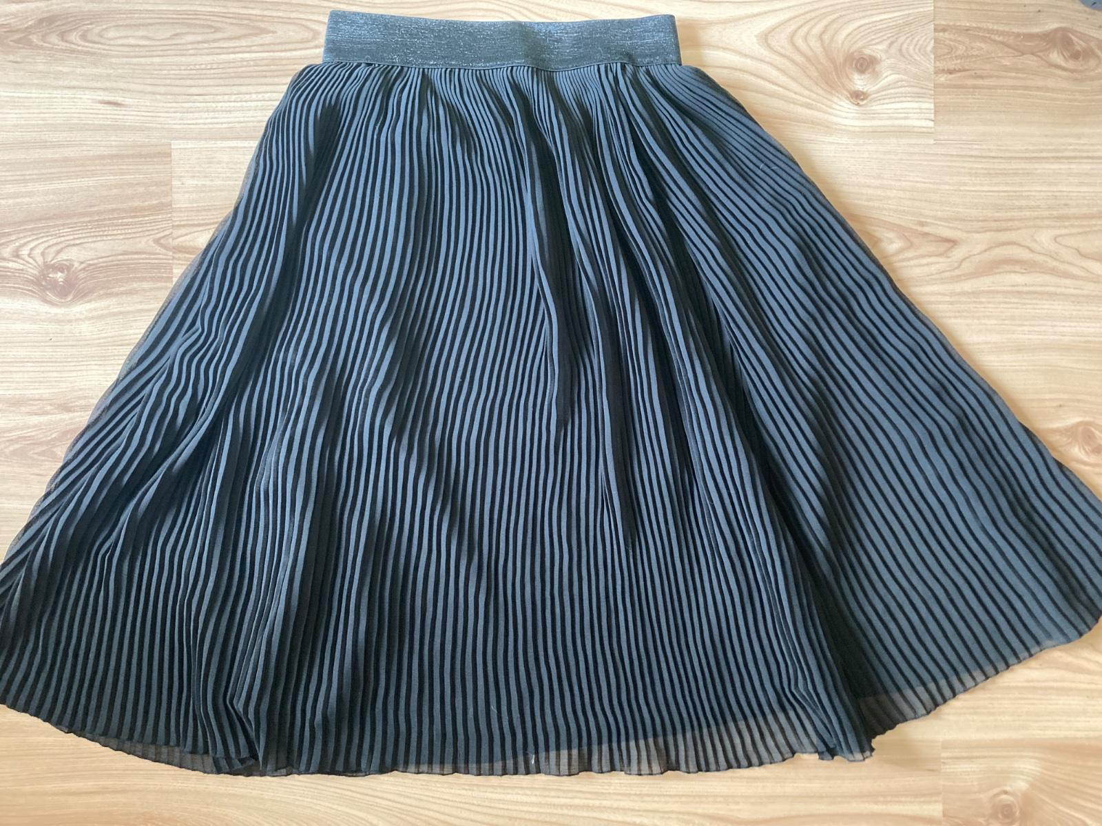 Dámska sukňa, málo nosená, bez dier a flakov, jemný prúžok, farba pekná čierna. Rozmery :celková dĺžka 60 cm, pás 42 cm.