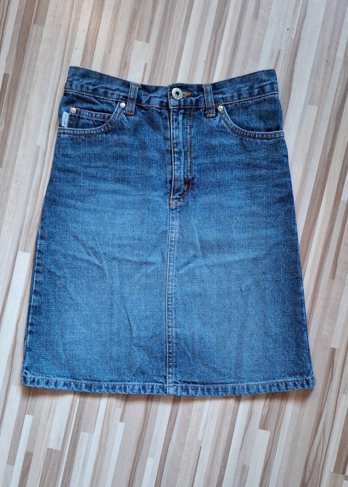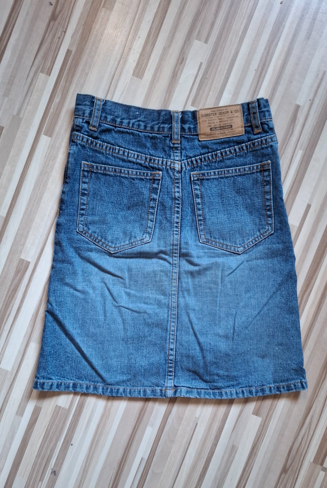 Predám riflovú sukňu 134, 8 rokov znacka Dubbster Denim,výborný stav. Dĺžka 45 cm, pás 31 cm, boky 37 cm.