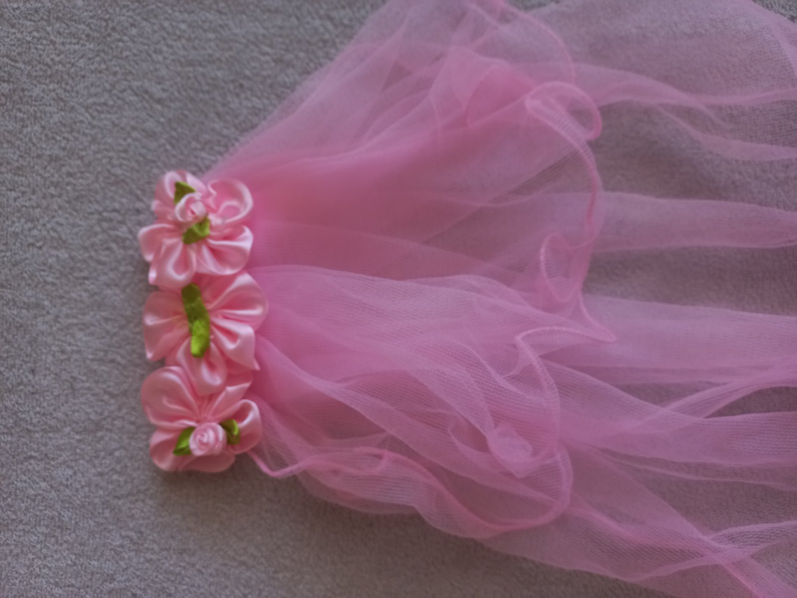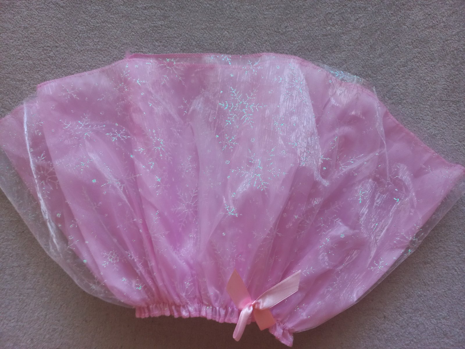 Krásna tutu suknička, veľkosť uvedená 128/134, ale je určite menšia. Celková dĺžka 31 cm. V páse gumička. Pás v kľude 23 cm, po natiahnutí max. 35 cm. Cena + pošta