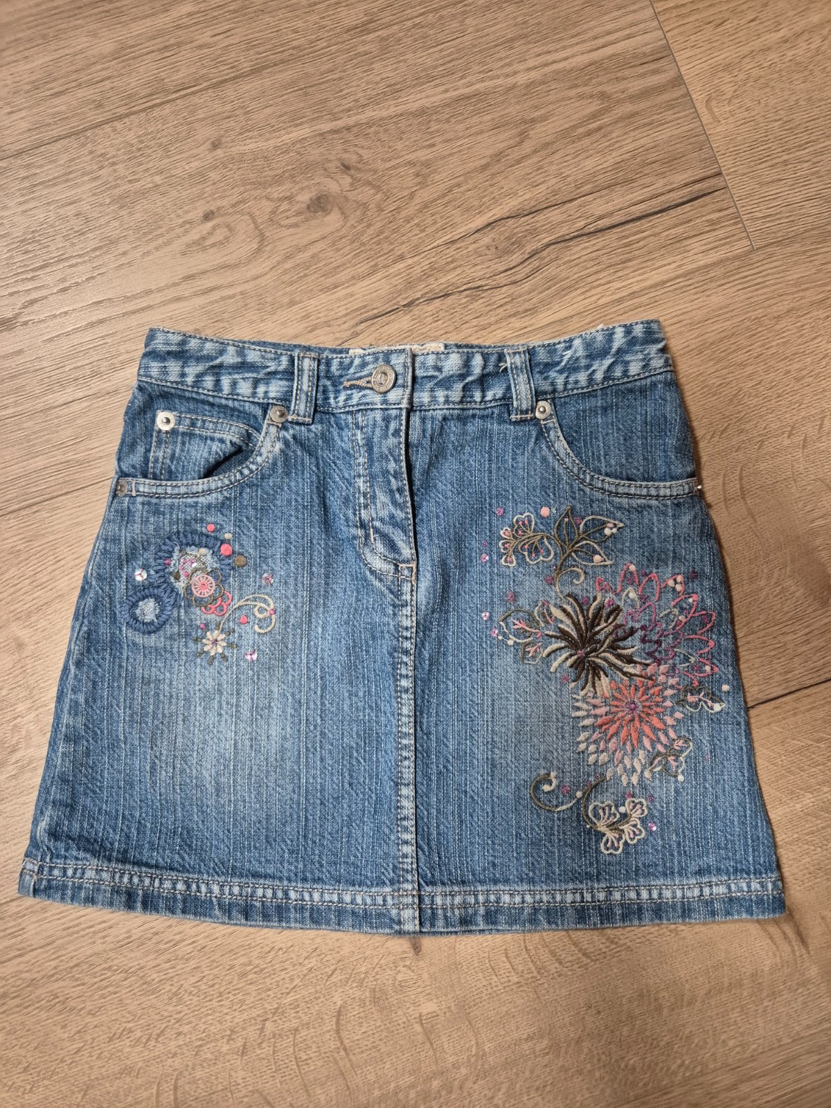 Riflová sukňa s kvetmi