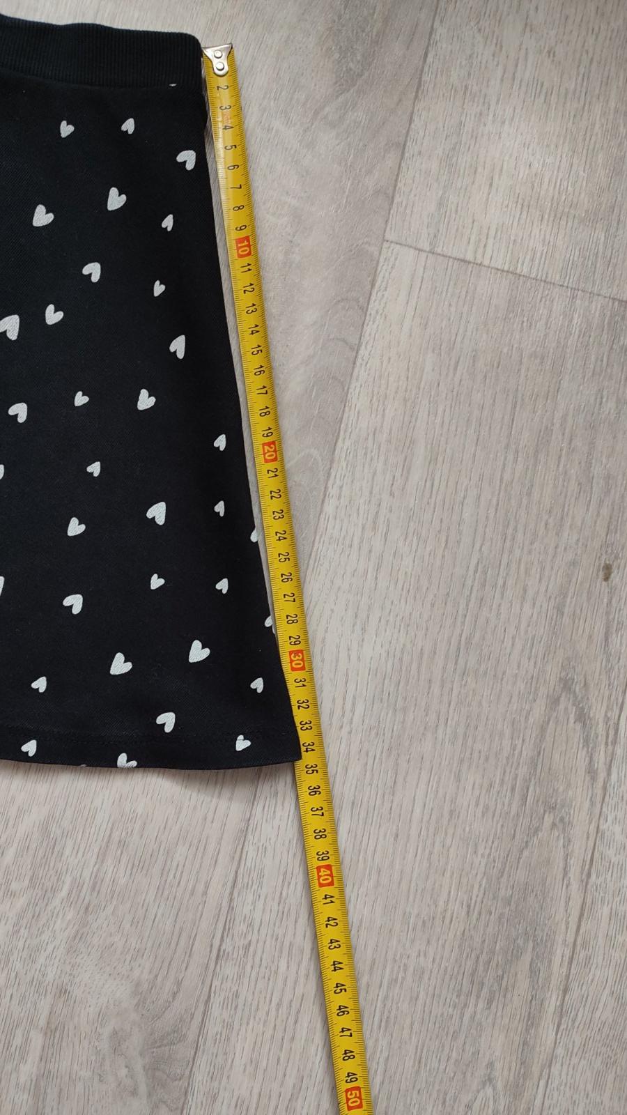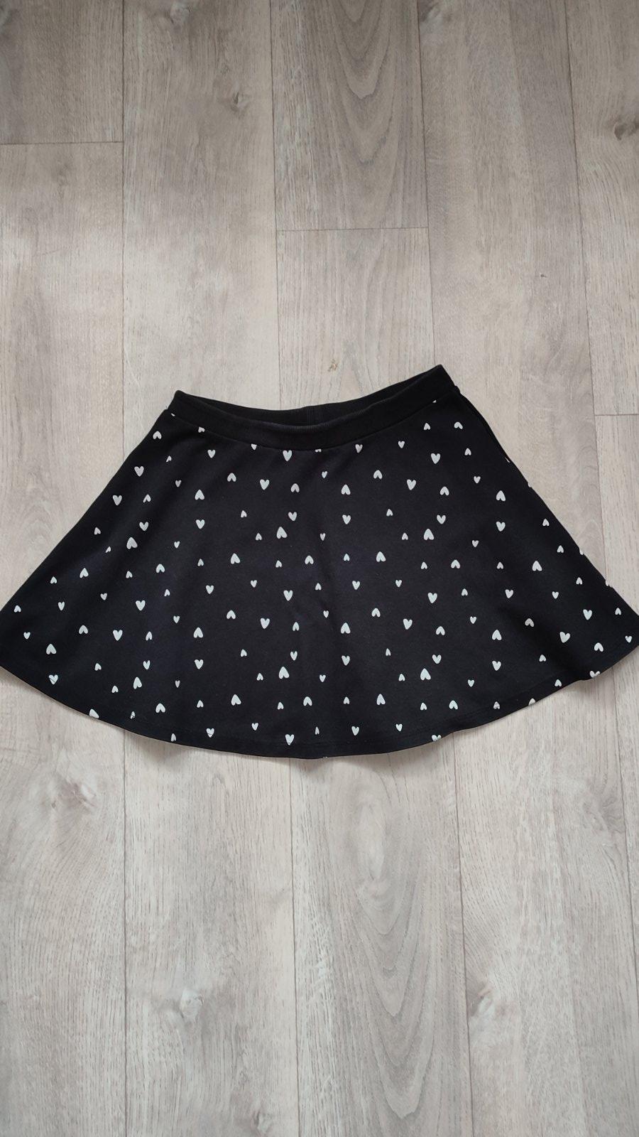 Zvonová čierno-biela sukňa z jemného úpletu z mäkkej bavlnenej zmesi so skrytou gumou v páse. Veľk. 134/140. Dĺžka - 36 cm, pás - 2x 30/40 cm.