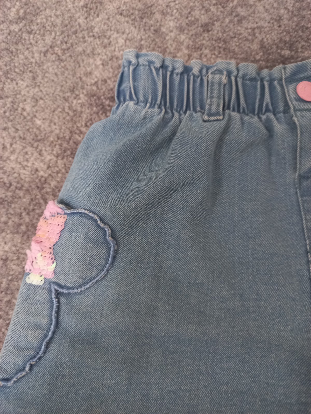 Riflova sukna s vyssim pasom na gumicku, raz oblecena, na bokoch vrecka s flitrami, Sinsay, 122, ako nova.