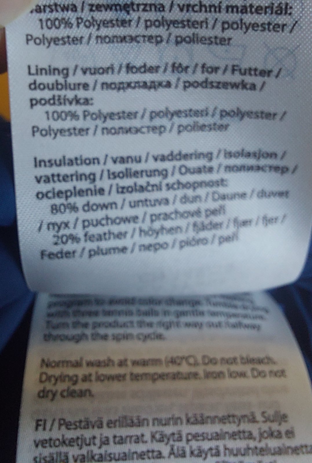 Výplň – 80 % prachové peří, 20 % peří.