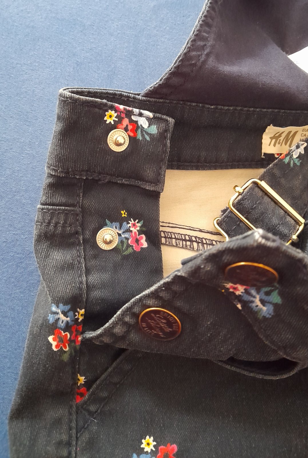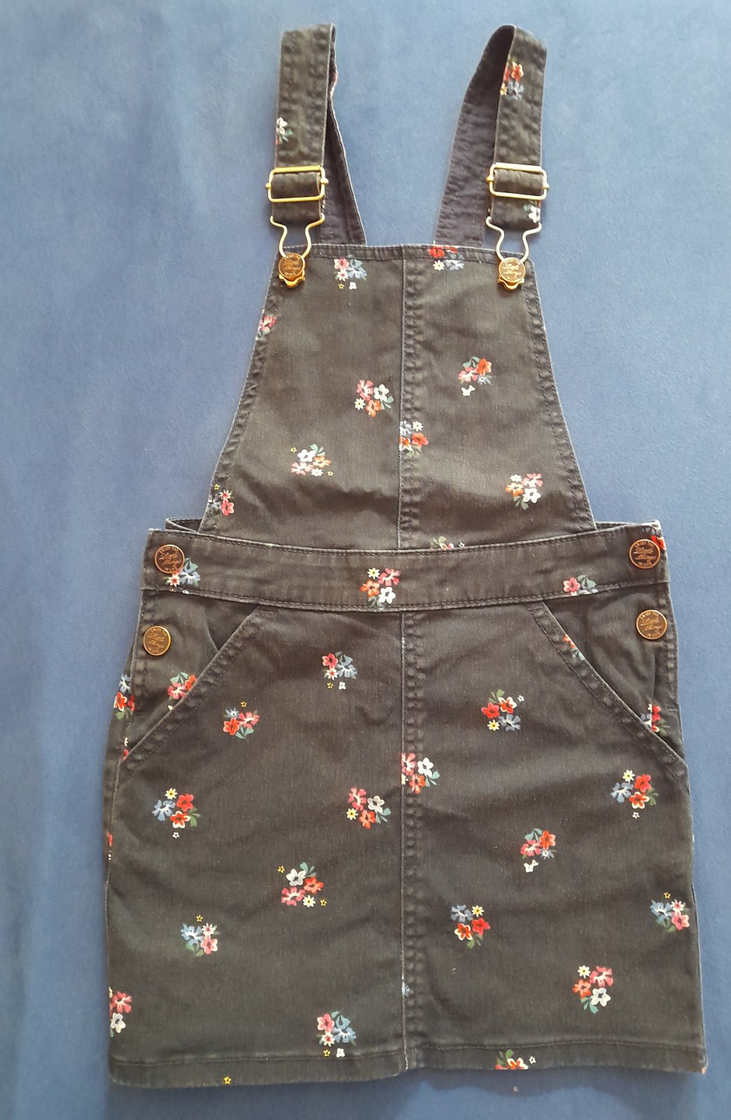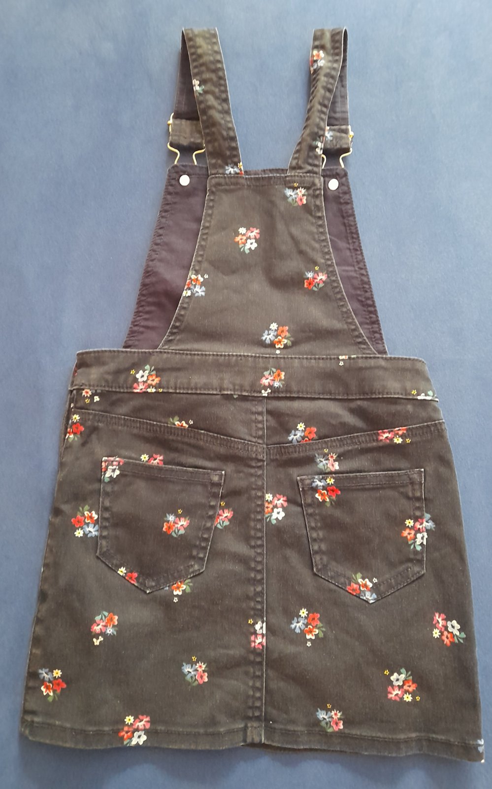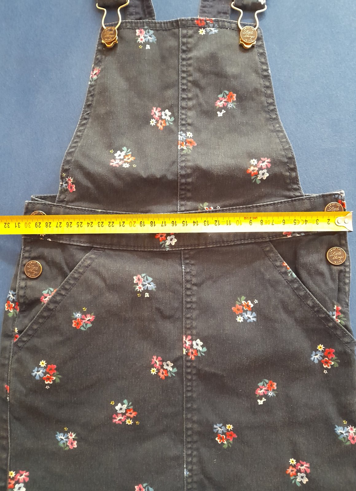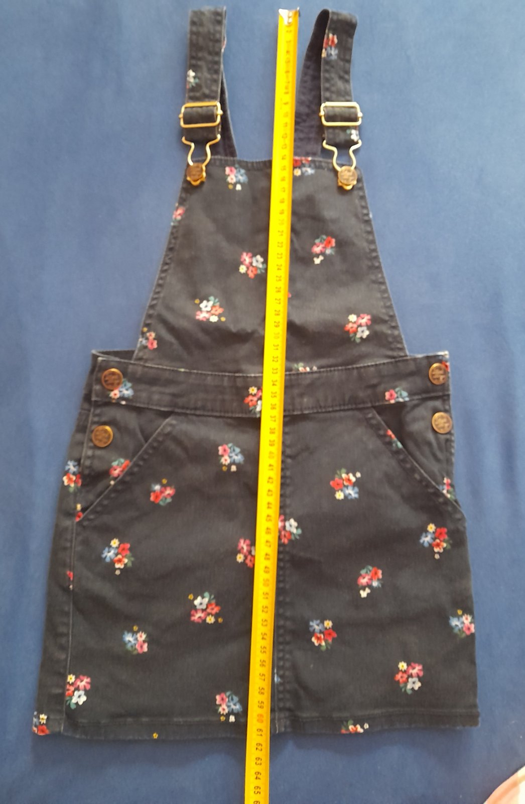 Riflová sukňa na traky s peknými detailami.