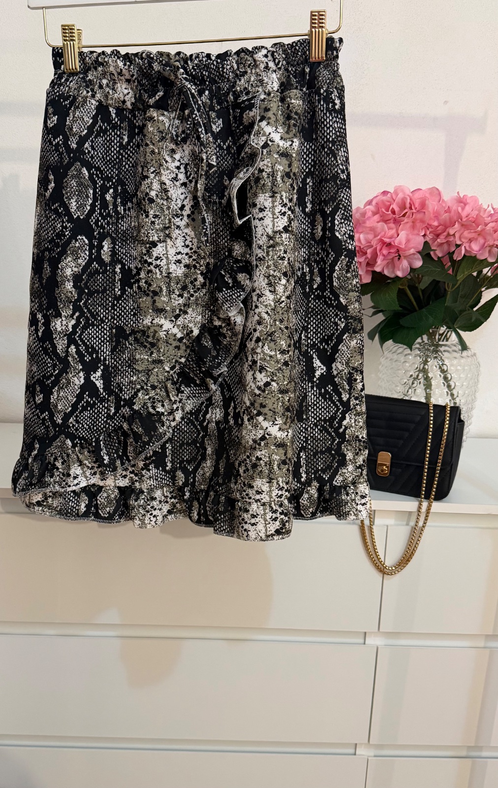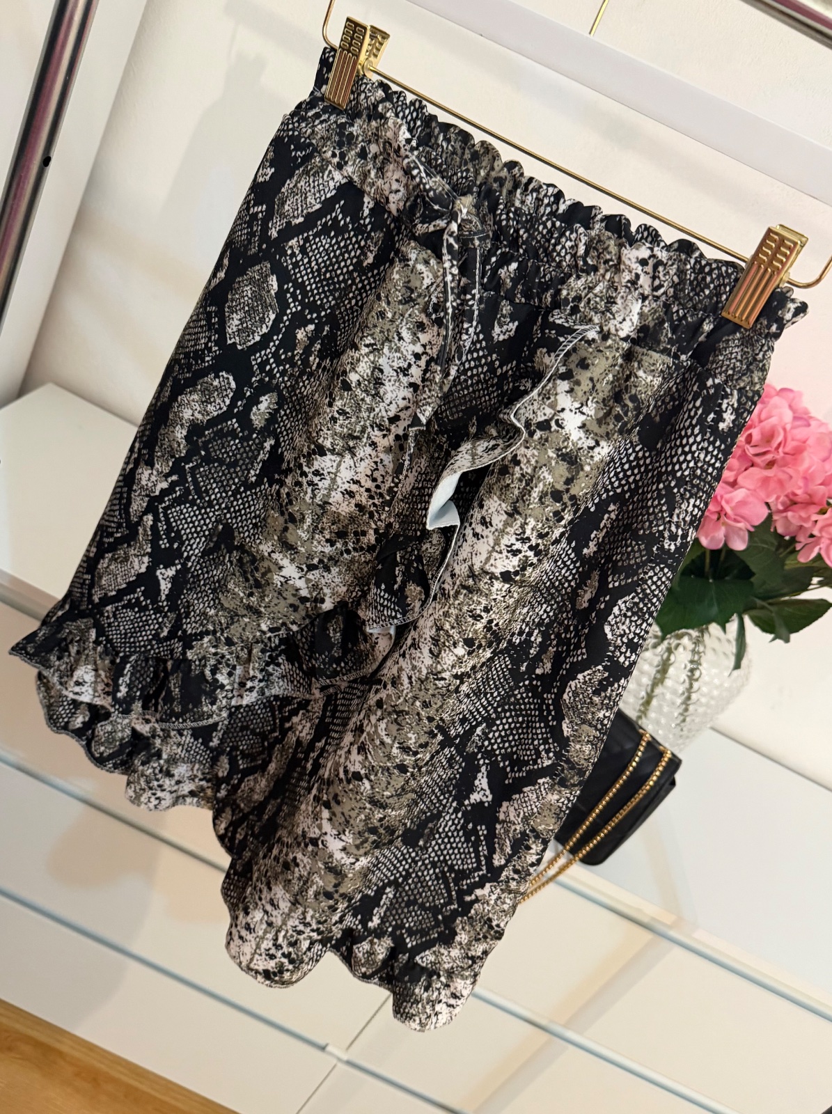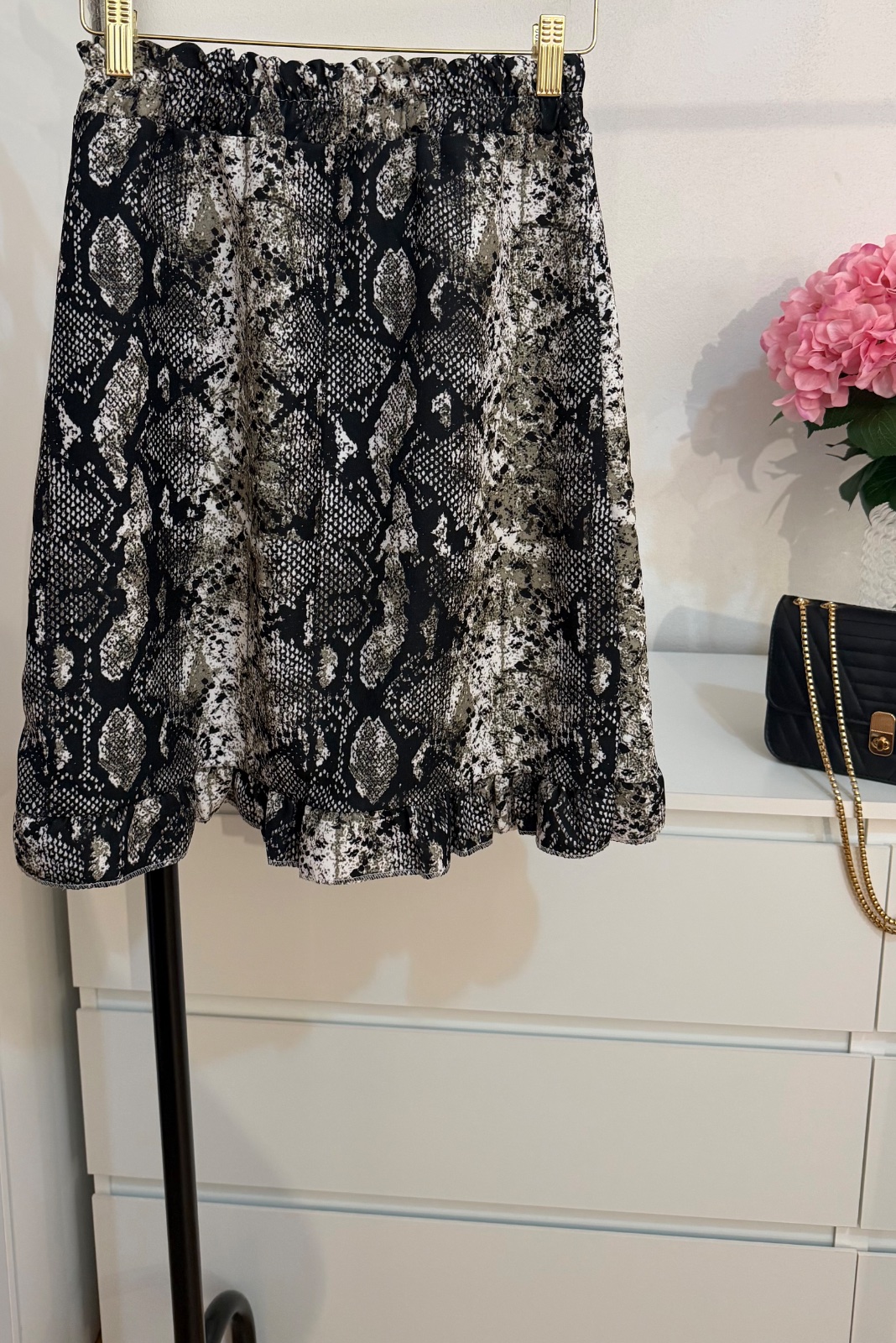Štýlová a výrazná sukňa s trendy hadím vzorom v elegantnej čierno-sivej kombinácii 🐍✨