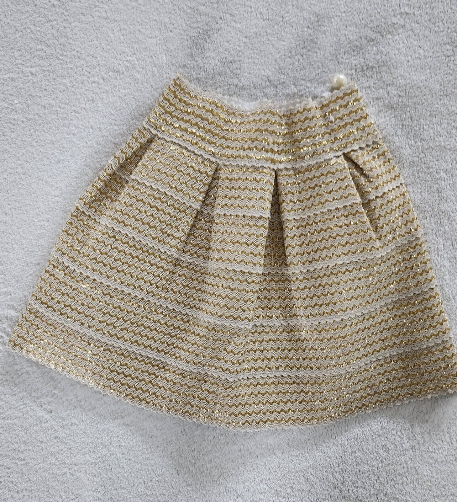 Krásna lesklá zlatá sukňa.Je nádherná oblečená.Vhodná aj na oslavy,či narodeniny.Zapínanie na zips ukončené perlou,pozri fotky