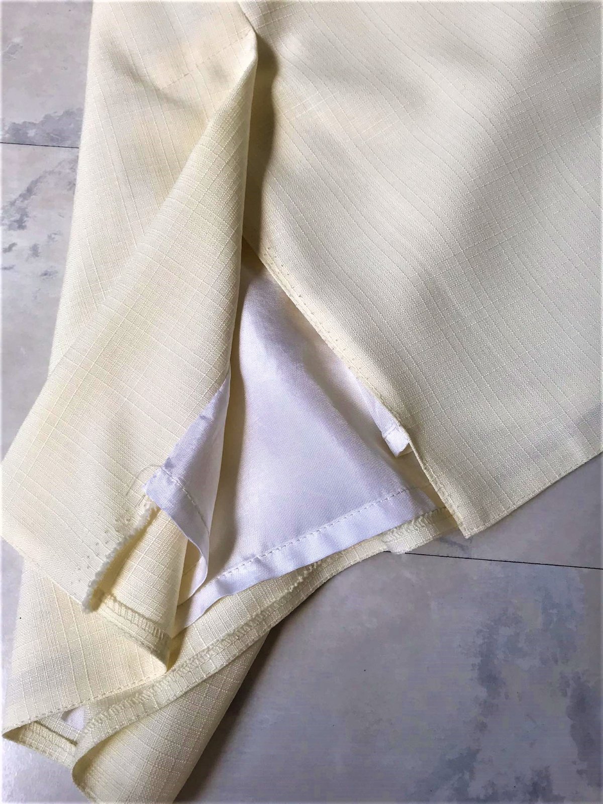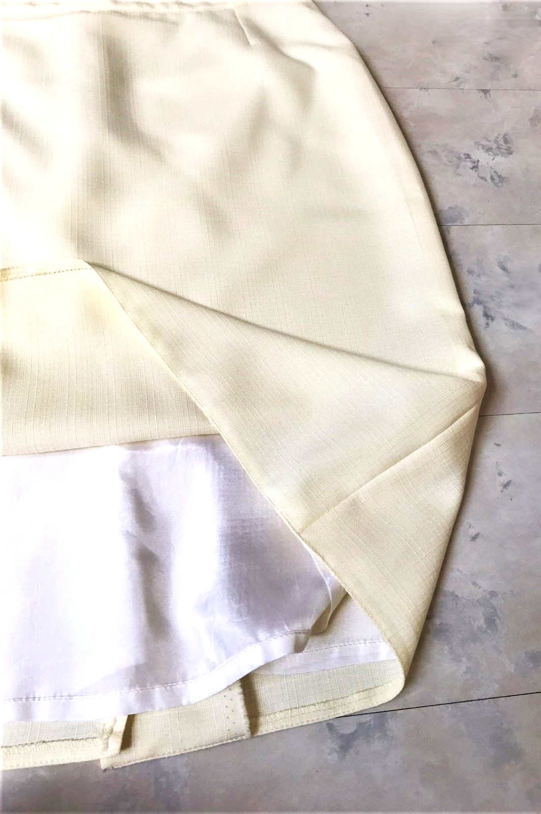krásne ušitá a vypracovaná rovná sukňa raz oblečená na svadbe,vpredu a vzadu záševky,celá podšitá,aby sa nelepila,krásna textúrovaná štruktúra materiálu,absolútne sa nekrčí,v top stave, je smotanovo bielej farby, nafotené s bleskom,tak niektoré fotky sú svetlejšie - aby bolo lepšie vidieť textúru materiálu