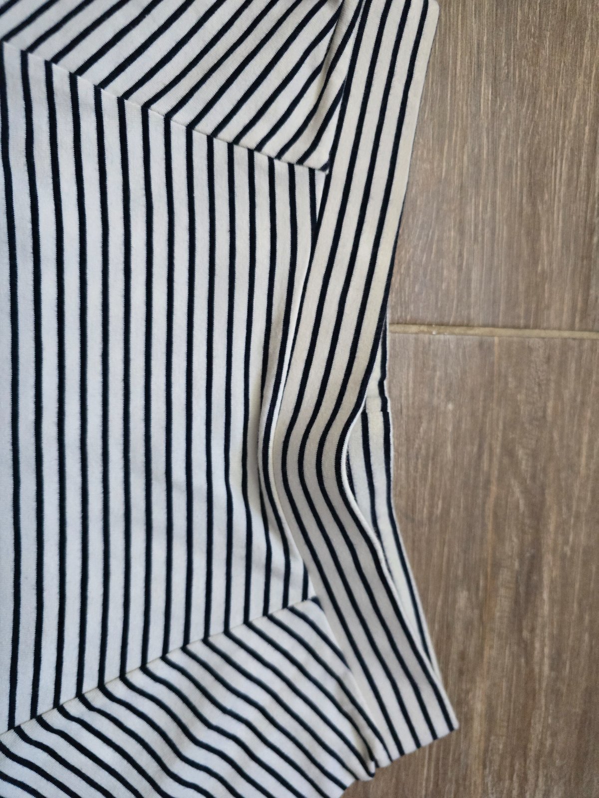 Plisovana ciernobiela sukna nosena bez poskodenia dĺžka 74cm pas v kľude 35x2cm max 49x2cm