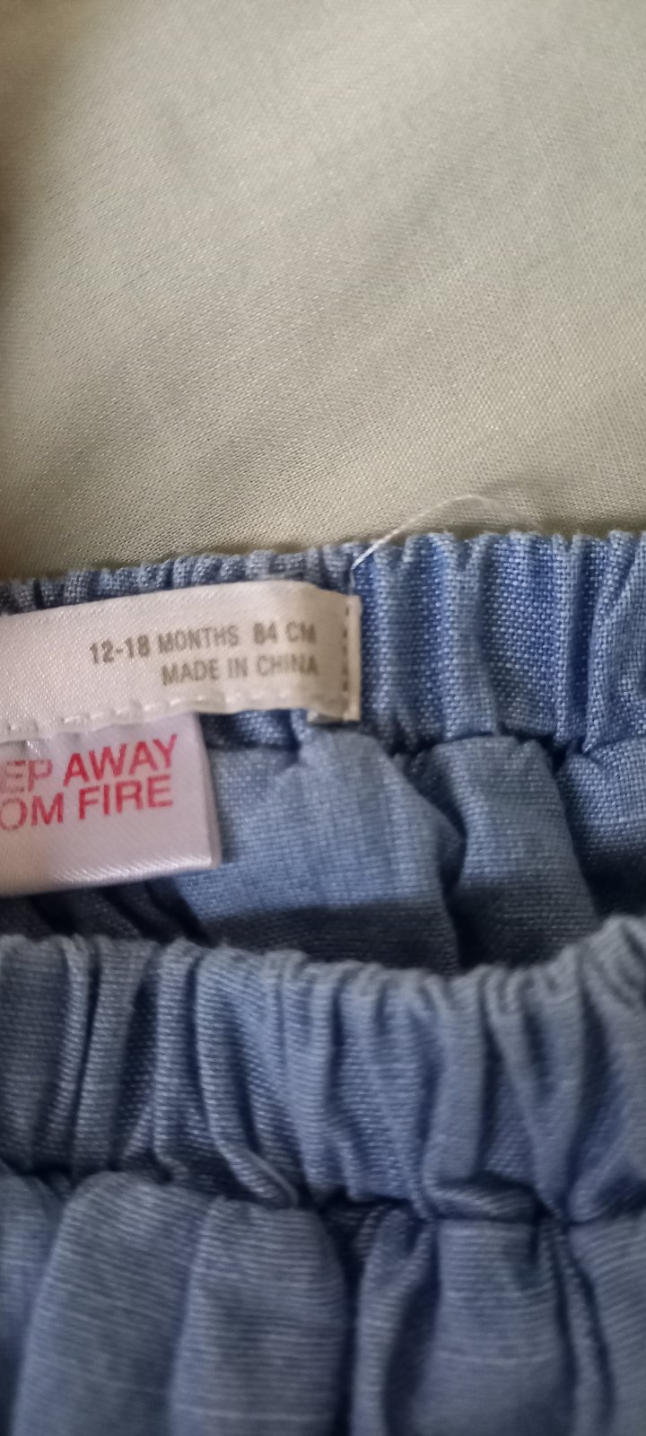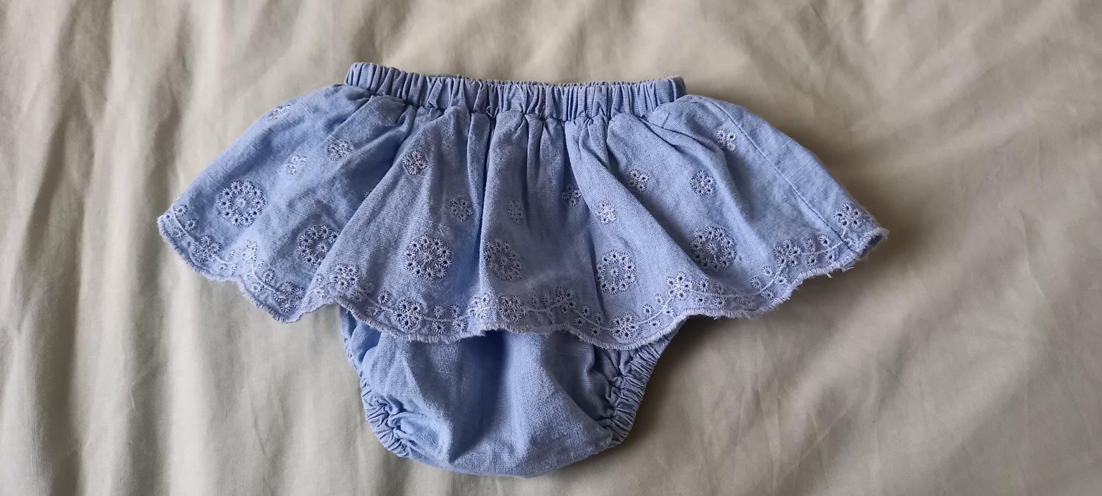 Bloomersy, Denimové vrchné nohavičky na plienku s volánikom a výšivkou, nenosené, len oprané a odstrihnuté visačky. Ani raz na sebe. Nevyuzili sme. Bez pošty.
