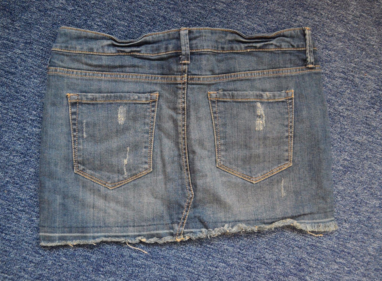 Ponukam na predaj riflovu suknu, velkost L, cena 2 eura. Pás je 43 cm teda obvod 86 cm a dĺžka je 29 cm.