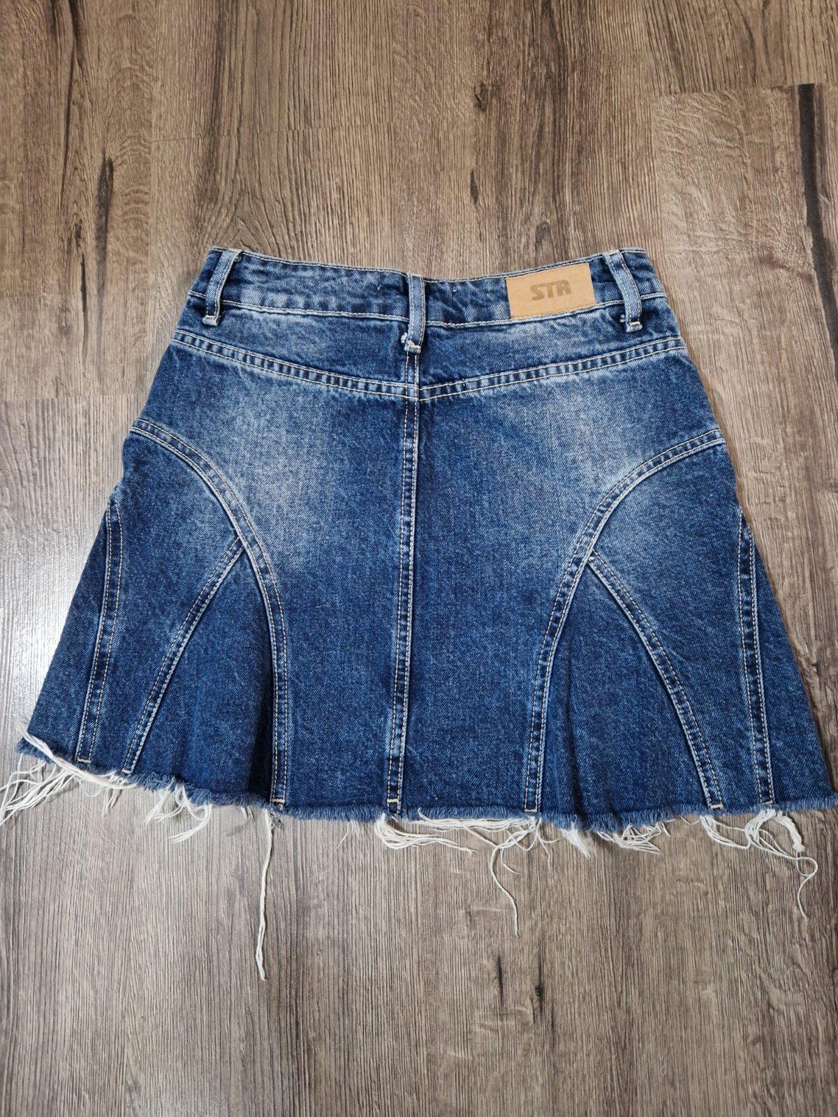 Rifle a minisukna Stradivarius, mäkká riflovina. Veľkosť 34. Dĺžka 34 cm pas 36 cm