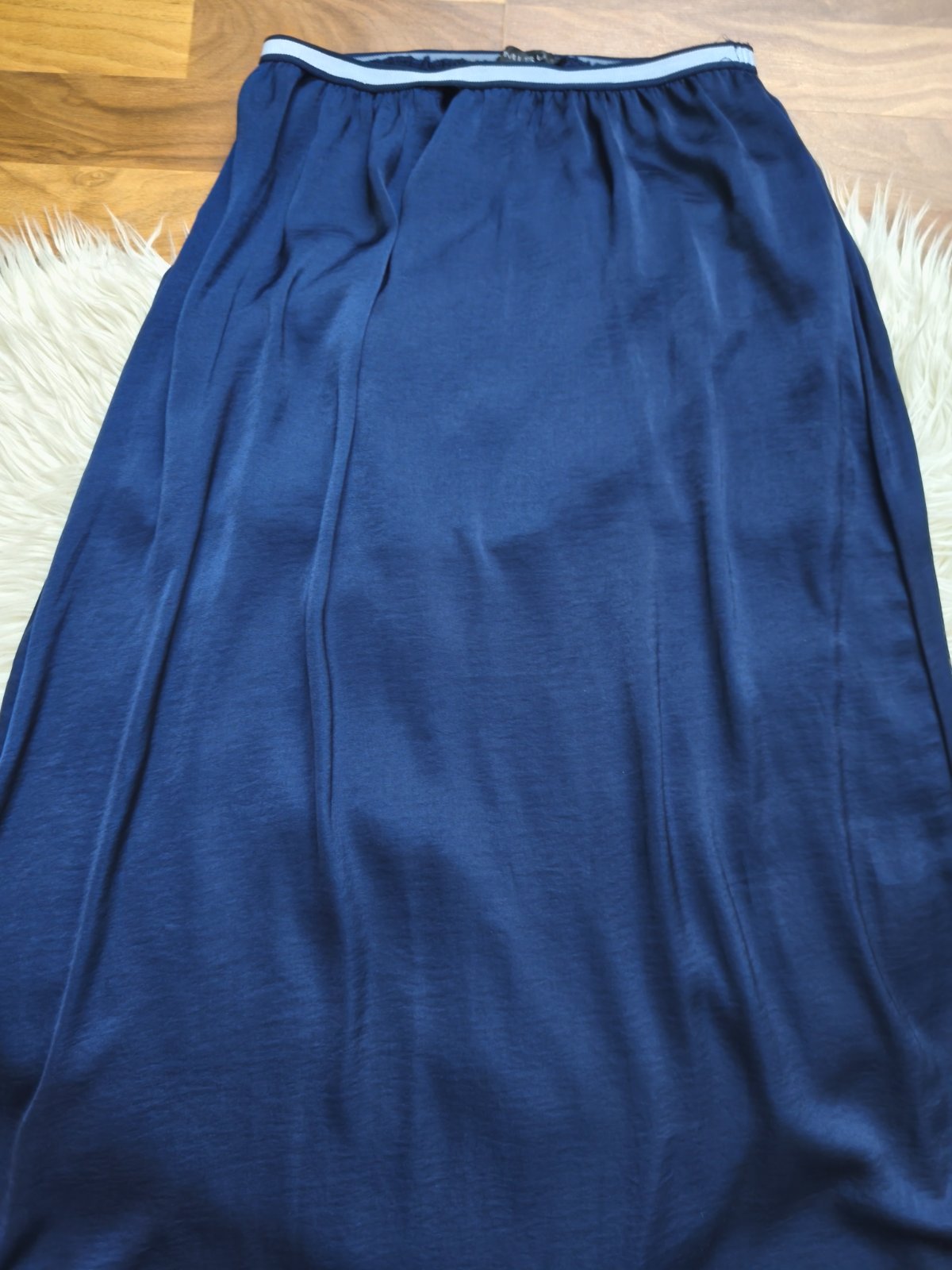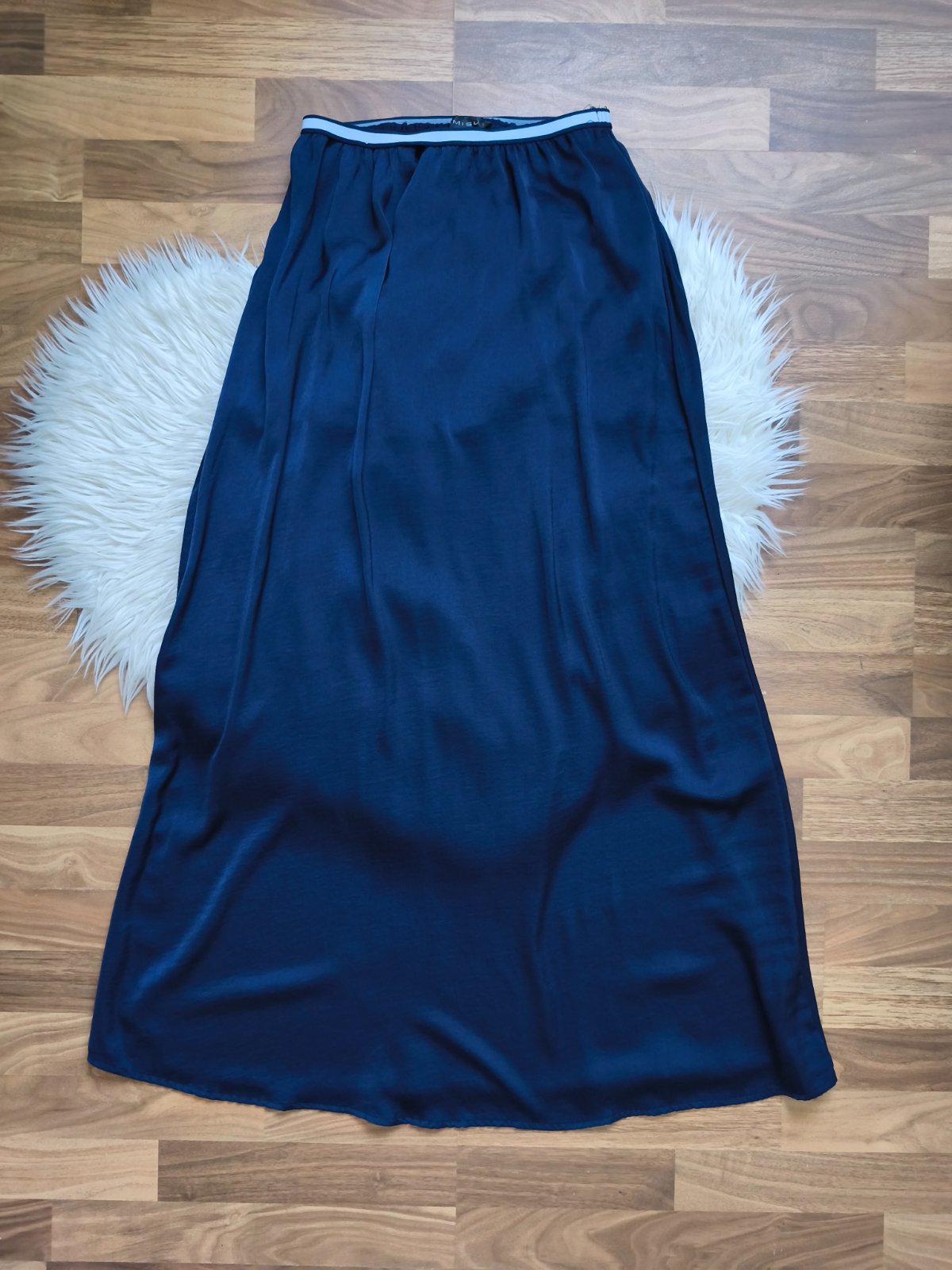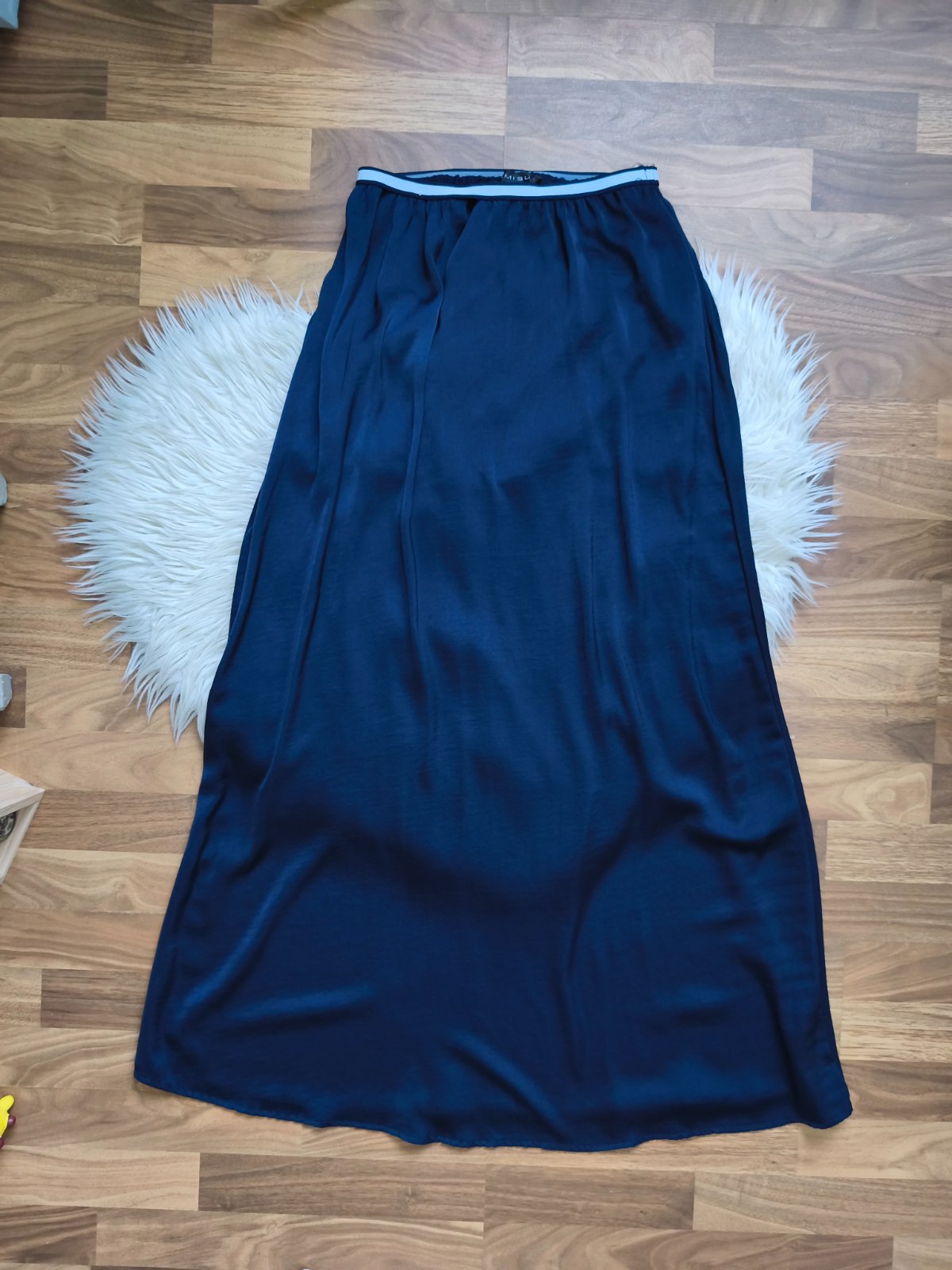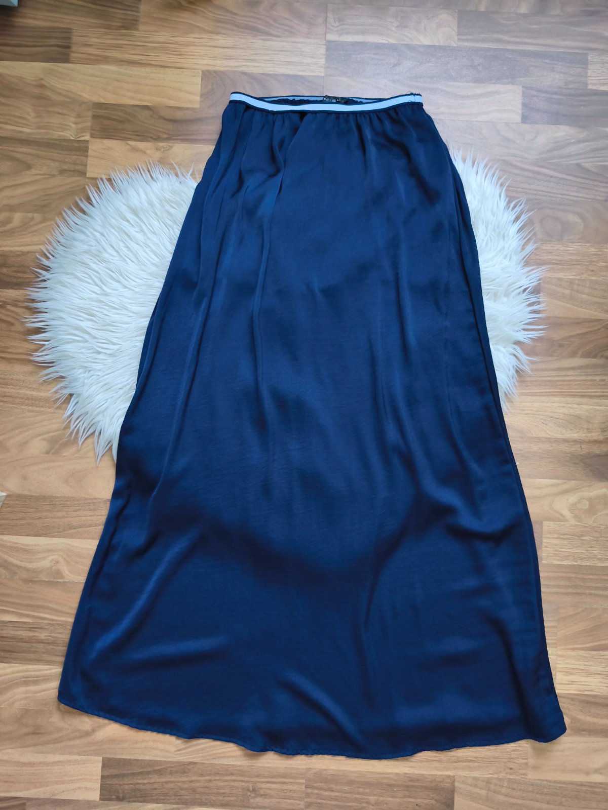 Dámska štýlová maxi sukňa, veľkosť 36,sadne aj na veľkosť 38, keďže pás je na gumu, malá chybička krásy, treba zašiť kúsok gumy na páse, viď na foto, všetko detailne pofotene, materiál je ako satén, krásna farba.
