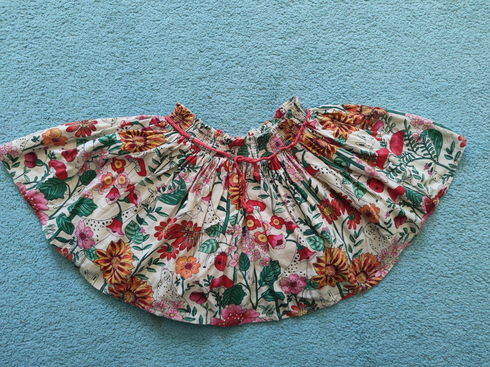 Ľahká, bohato riasená sukňa. Spodná vrstva bavlna, vrchná viskóza. Veľkosť cca 110, rozmer odfotený.