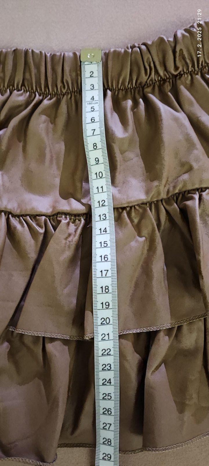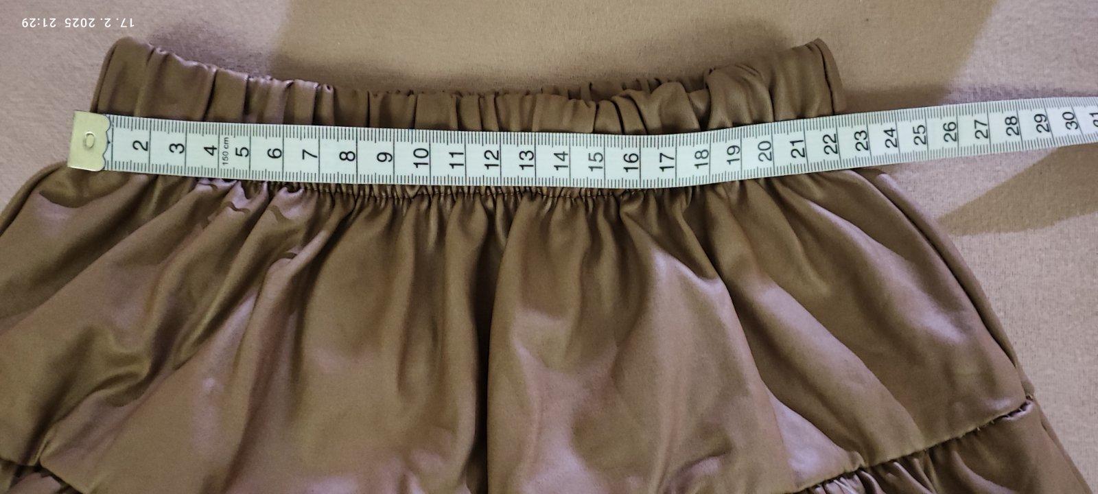 Pekna suknicka skoricovej farby vo velmi dobrom stave. Rozmery: celkova dlzka: 28cm, sirka v pase (v pase je aj regulacna guma): 28cm