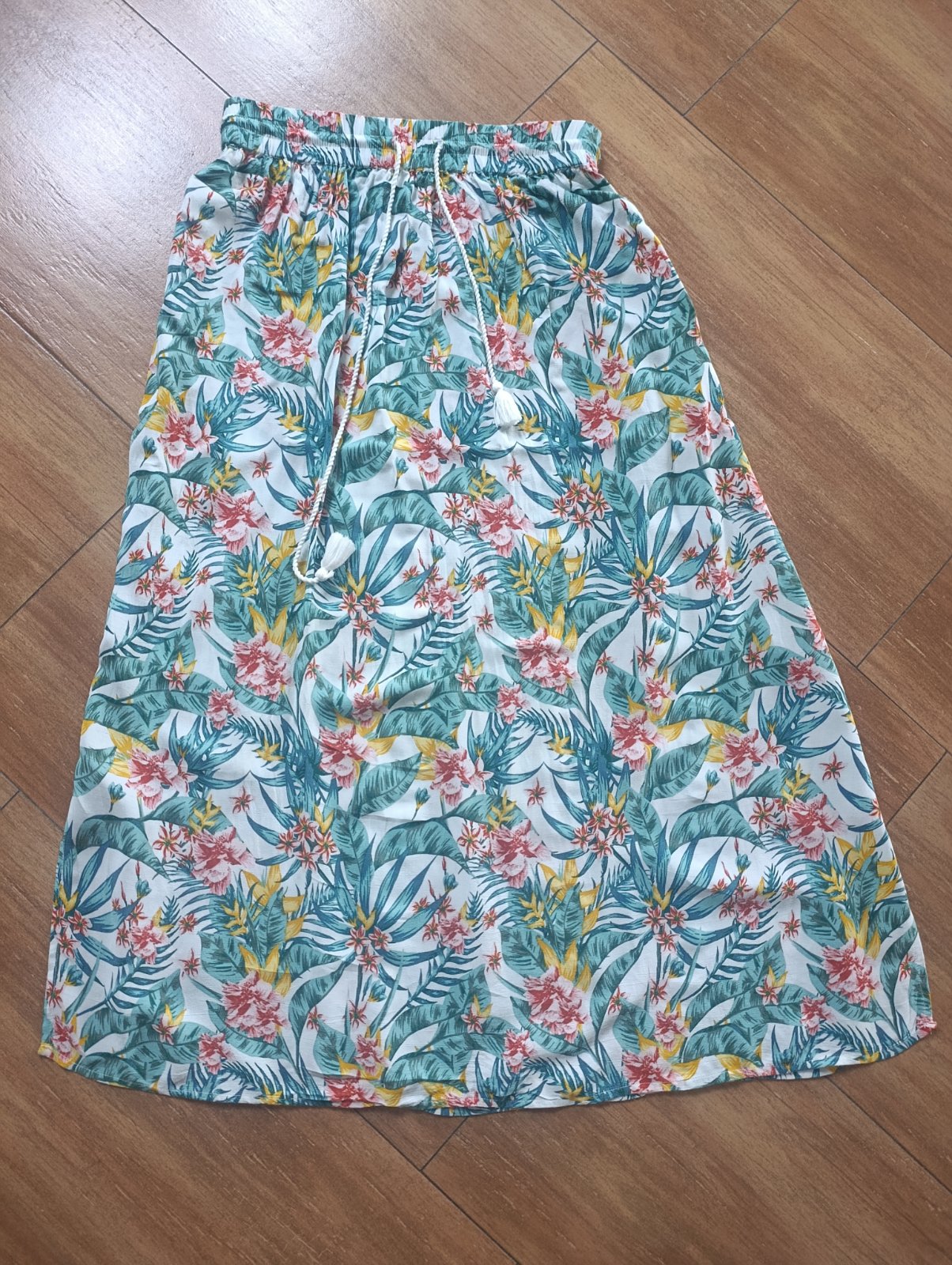 Zloženie: 100% polyester, v páse na gumu (obvod od 64cm do 90cm), sukňa je podšitá, celková dĺžka 77cm.