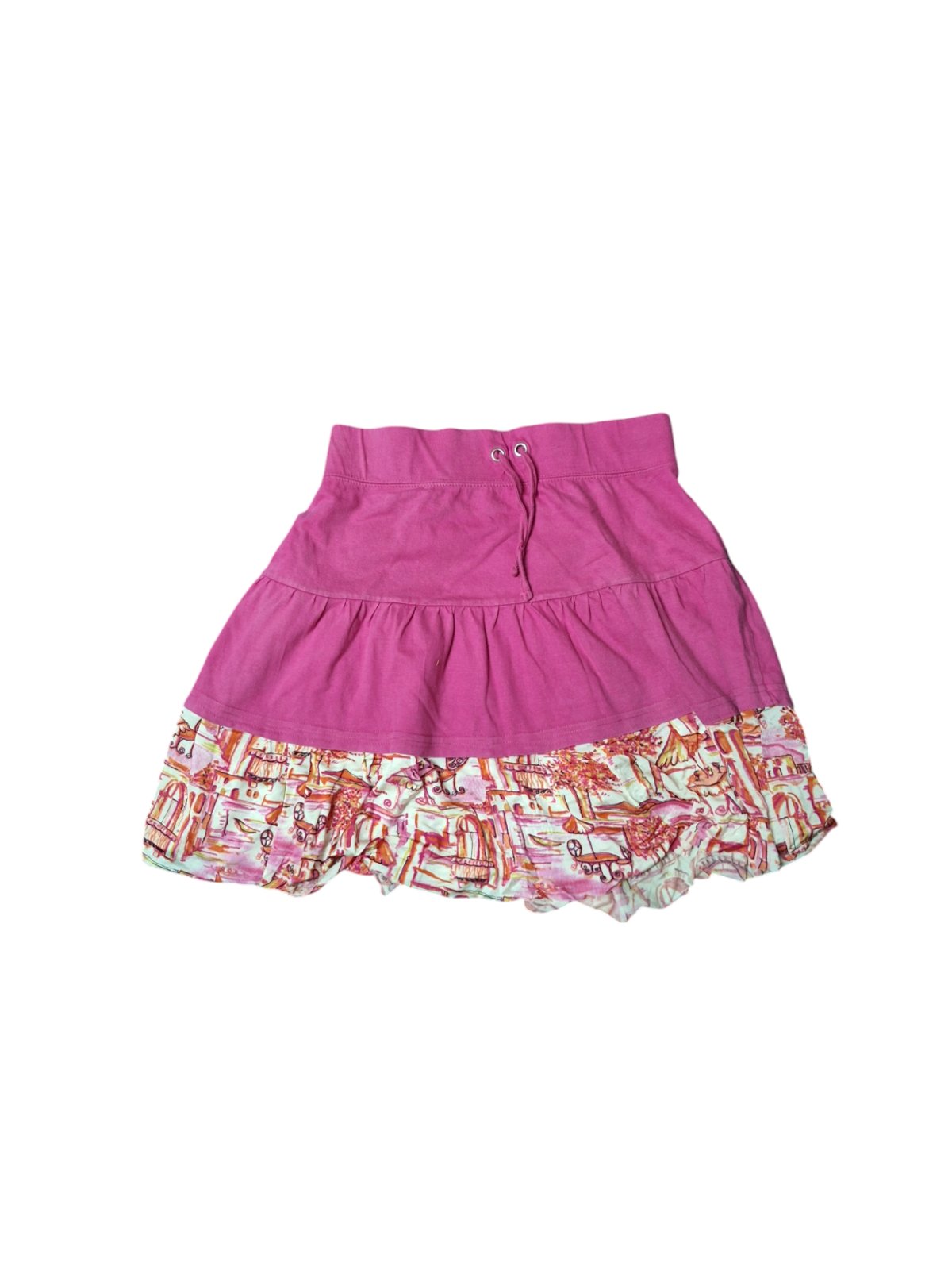 Dievčenská bavlnená suknička. V páse je guma a šnúrka. Dĺžka je 40cm,obvod pása v kľude je 66cm,natiahnuté 78cm. kód 1005