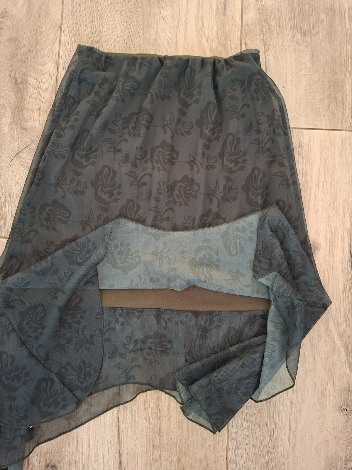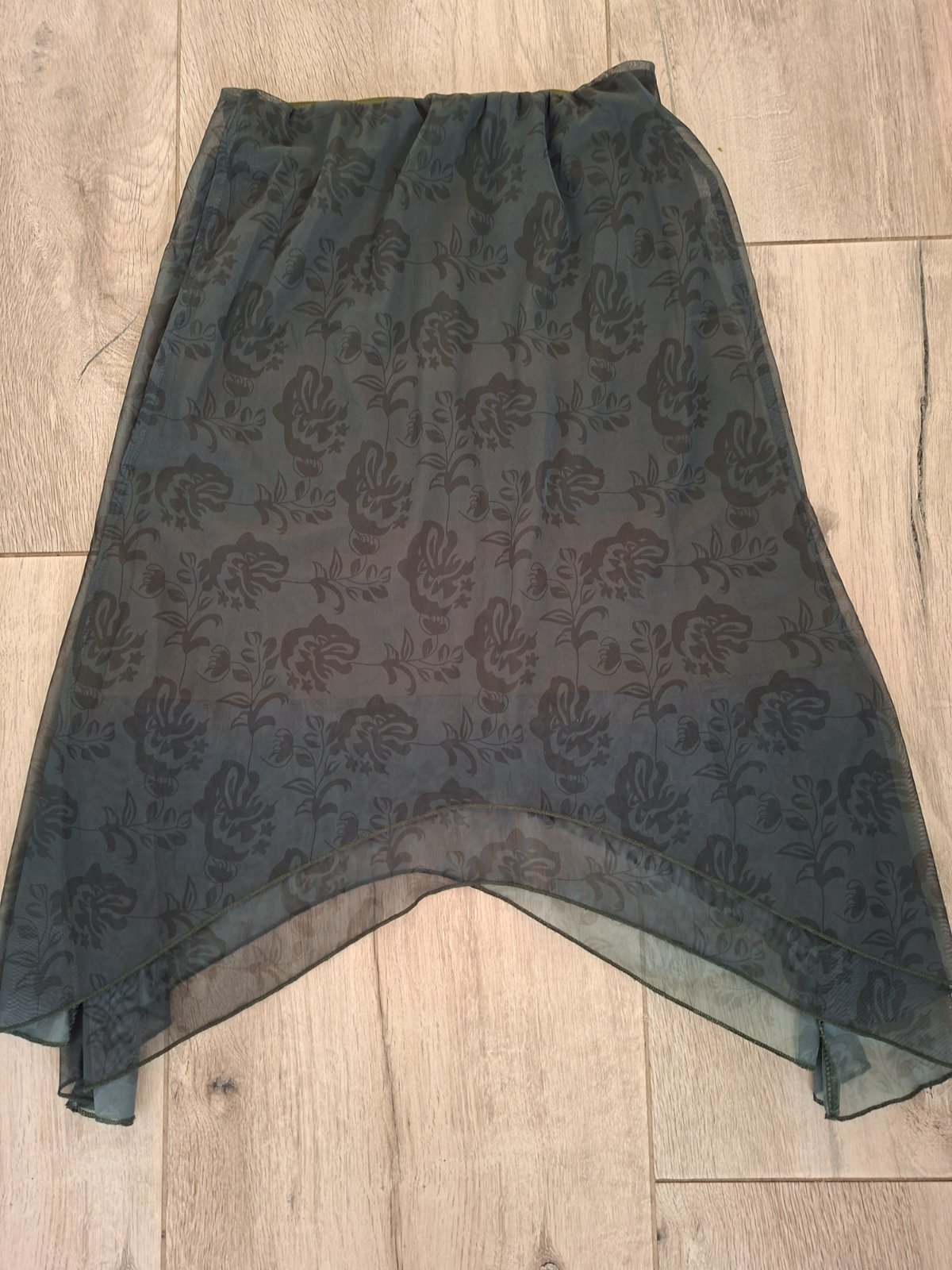 Dlzka vpredu najmenej 48cm, bocna dlzka 68cm najviac, podsita , v pase siroka guma. Rumwe