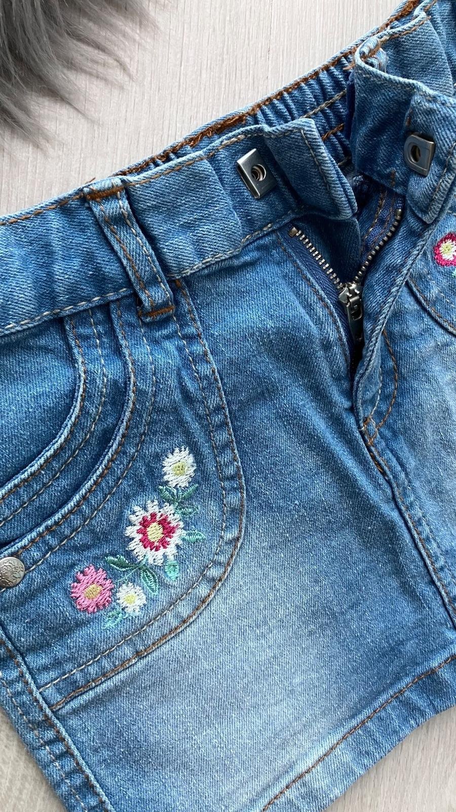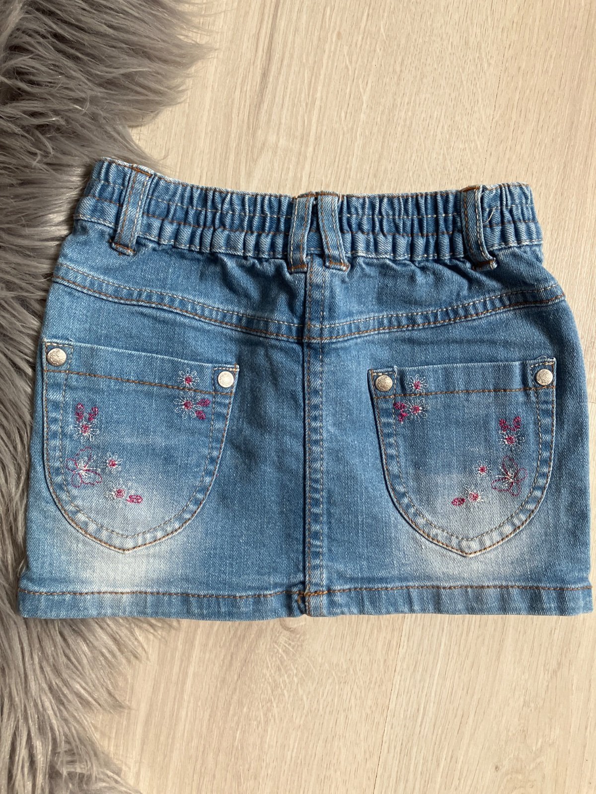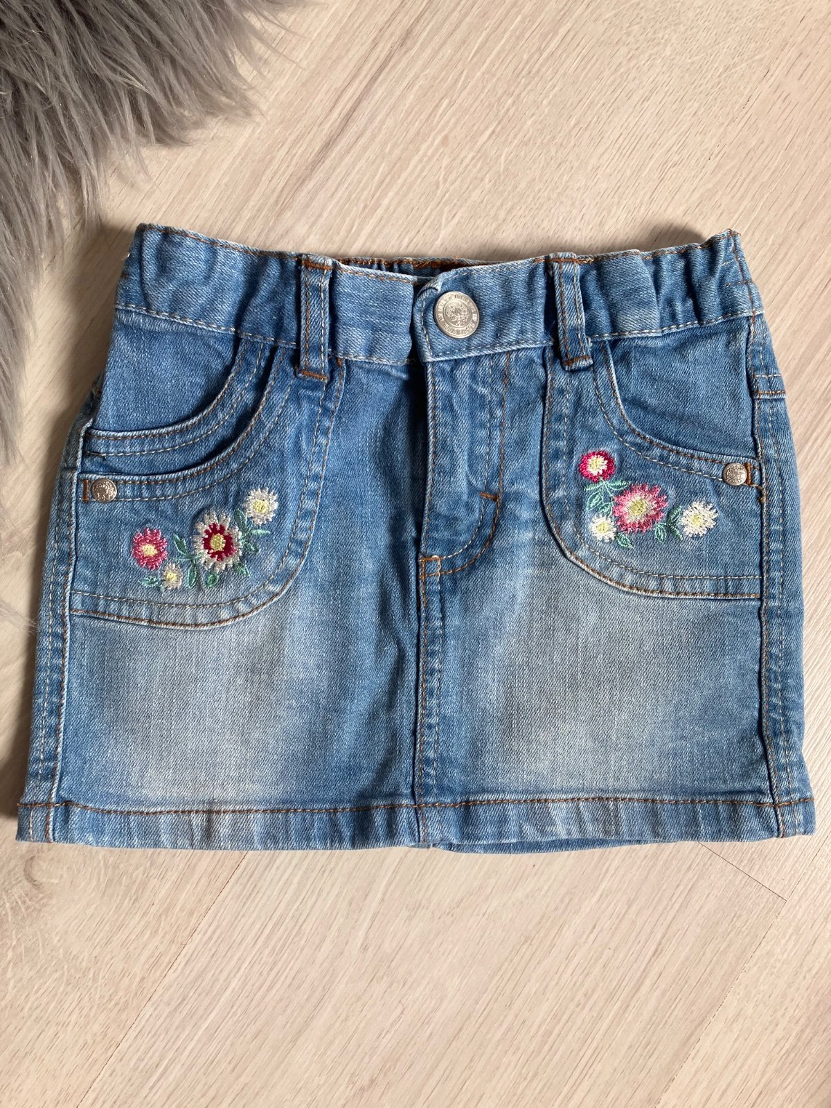 Dievčenská rifľová sukňa s vyšívanými kvetmi, tenšia, jemne elastická, nastaviteľná guma v páse, materiál 99% bavlna 1%elastan.