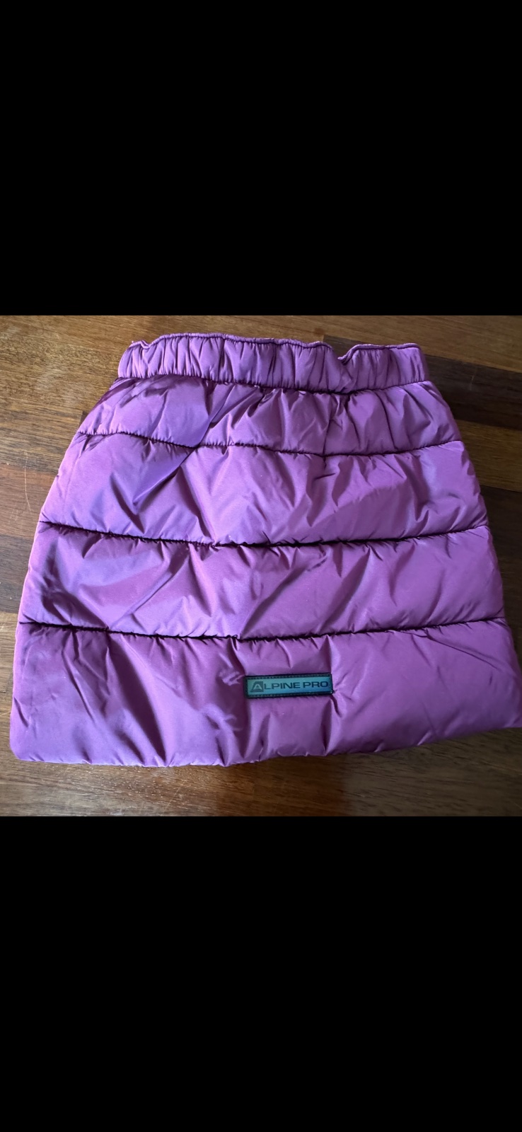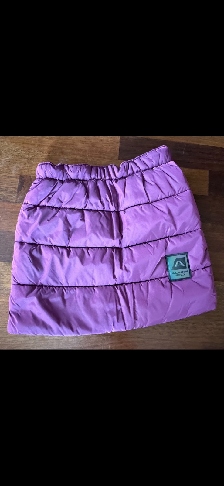 dlzka je 28 cm, pás 2*23 cm plus vzadu gumička. Na boku zips a gombik. Oficialna veľkosť 110, ale dcéra nosila ako 116/122. Zaujimava farba, taka fialovo-bordova... Pekný noseny stav, možno ...