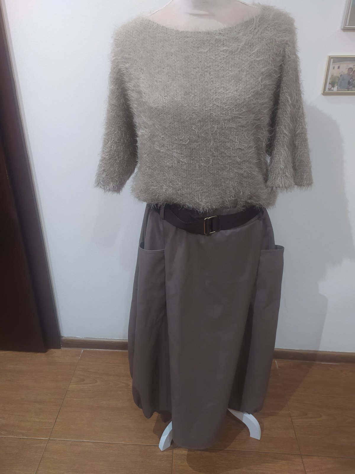 Kozenková sukňa ,balonoveho strihu,vpredu vrecká ,doplnená opaskom,v páse guma, nenosená bez visačky