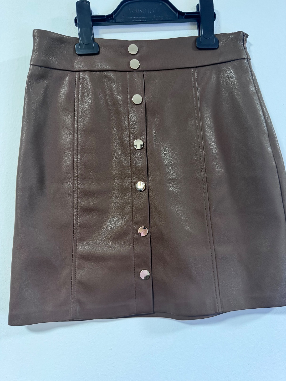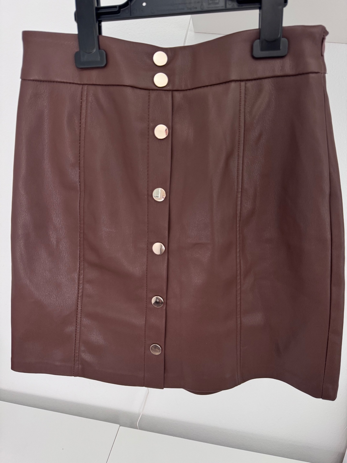Štýlová koženková sukňa so zlatými gombíkmi, amisu,xs
