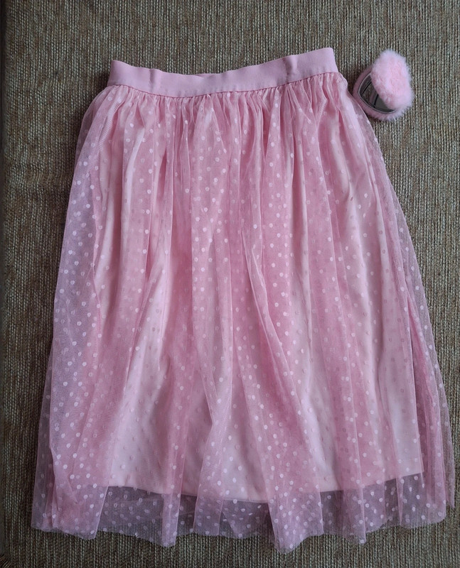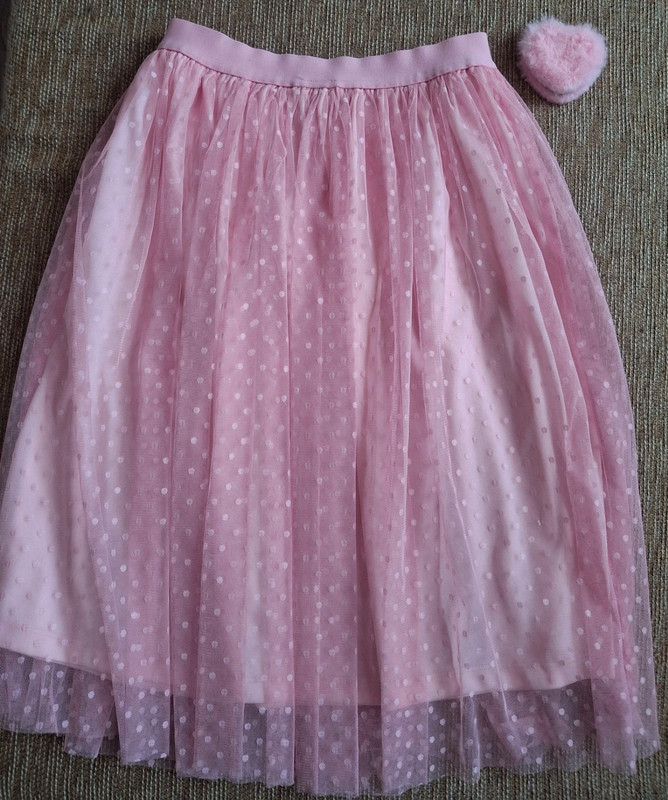 Nenosená, dvojvrstvová tylová sukňa so spodničkou. Značka Fisherfield, veľkosť 152, 12 rokov. Rozmery: pás 2x32cm, natiahne sa na 42cm, dĺžka 57cm spodnička, 64cm celková dĺžka. Nepoužívané obojstranné zrkadielko pridám zdarma.