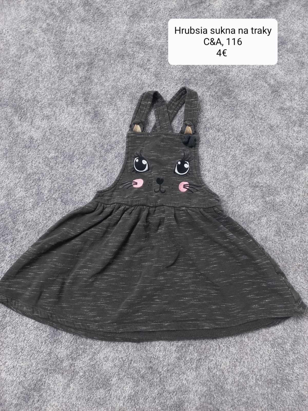 Malo nosena mikinova sukna na traky, traky su napevno. Hrubsis, zateplena latka. Znacka C&A, velkost 116.
