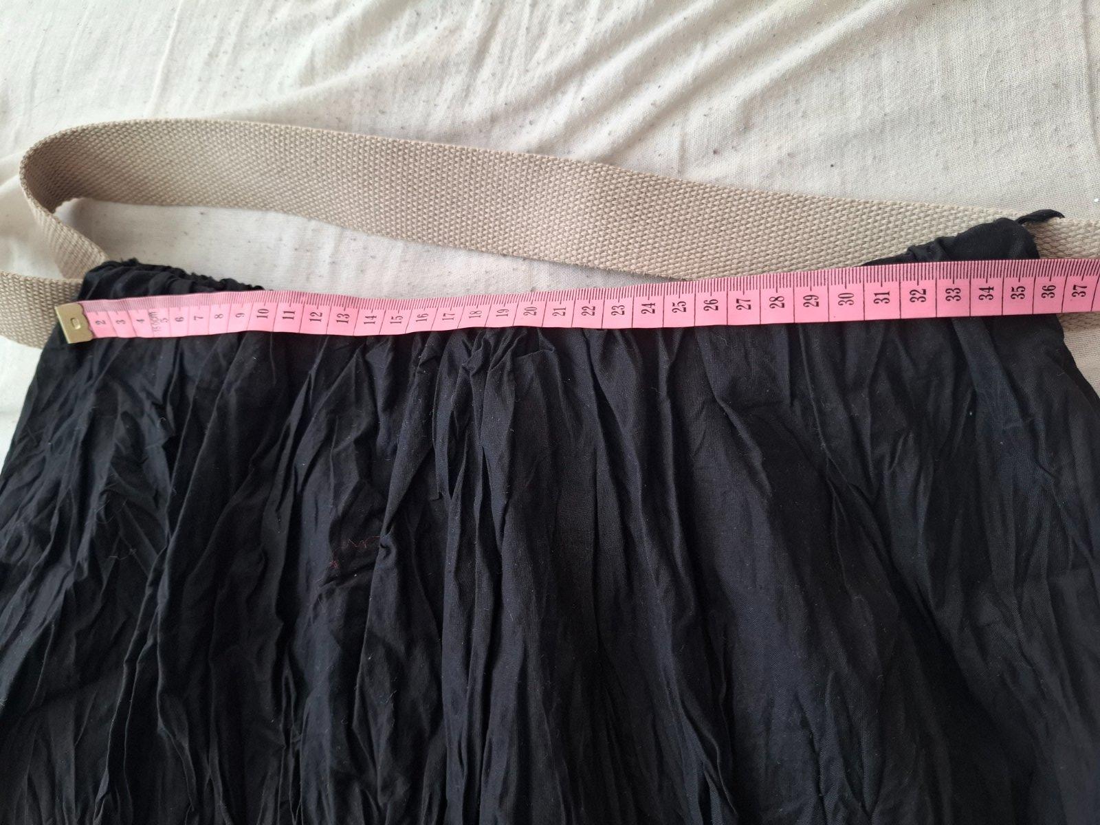 Táto midi sukňa od ZABAIONE, vyrobená z čistej bavlny, ponúka výnimočné pohodlie vďaka voľnému strihu. Nepriehľadná podšívka a látkový opasok poskytujú dodatočnú funkčnosť a štýl. Ideálna na bežné aj formálne príležitosti. Veľkosť XXL. Cena 12€+ pošta