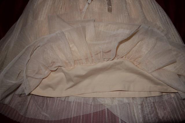 Krasna tylova skladana suknicka- nova, s visackami. Je takej bledo-lososvej farby.