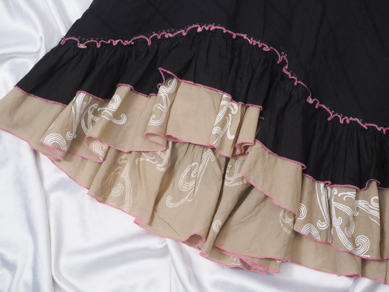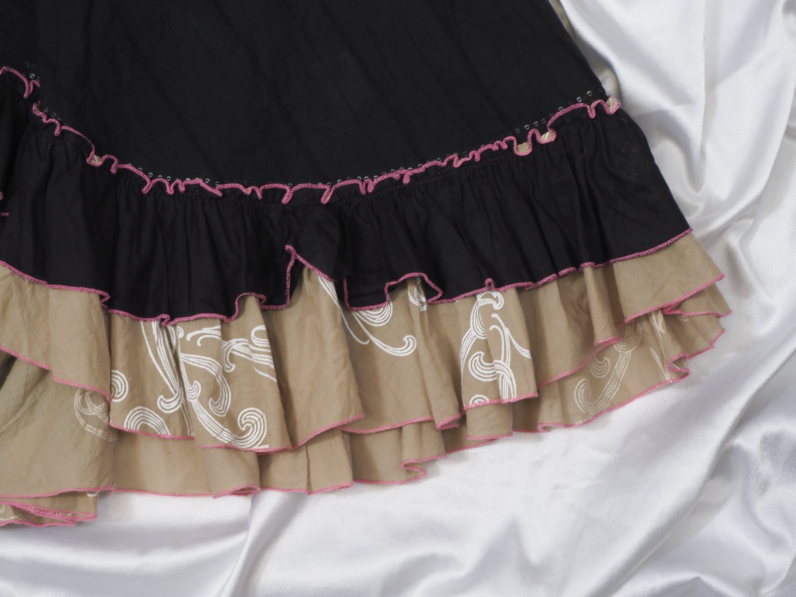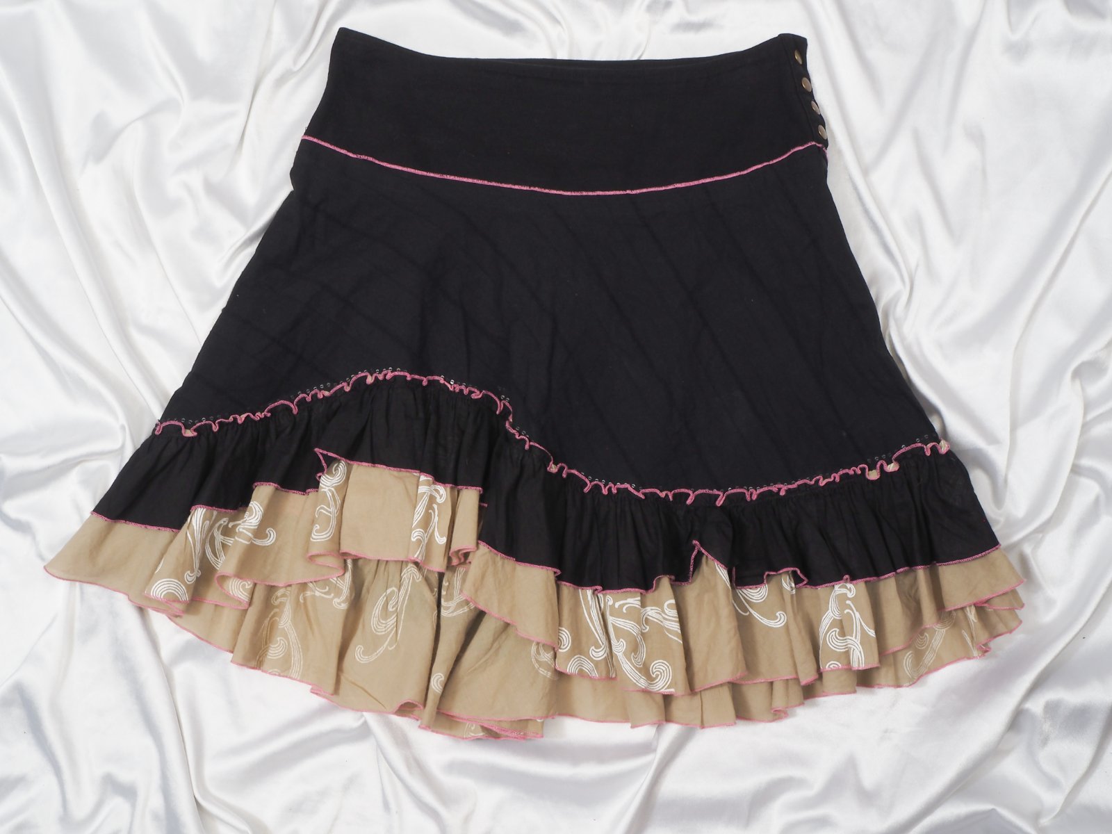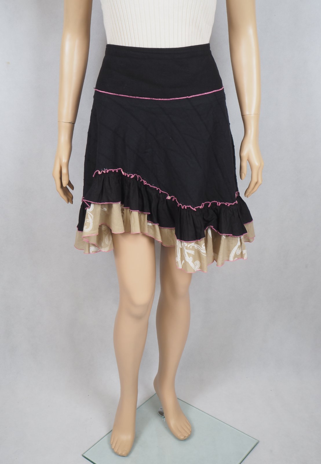 Kvalitné letná sukňa čiernej farby s volánami, bočné zapínanie na patentky, mateirál 100% bavlna, super stav.