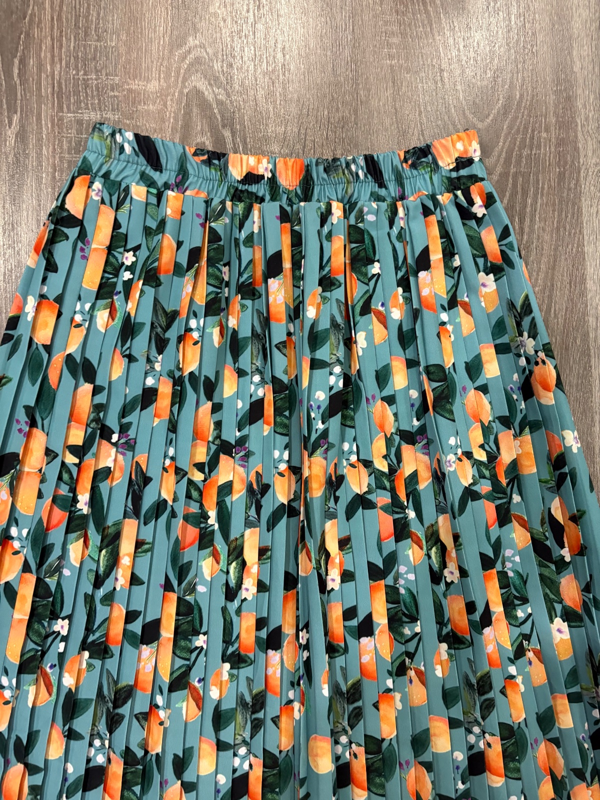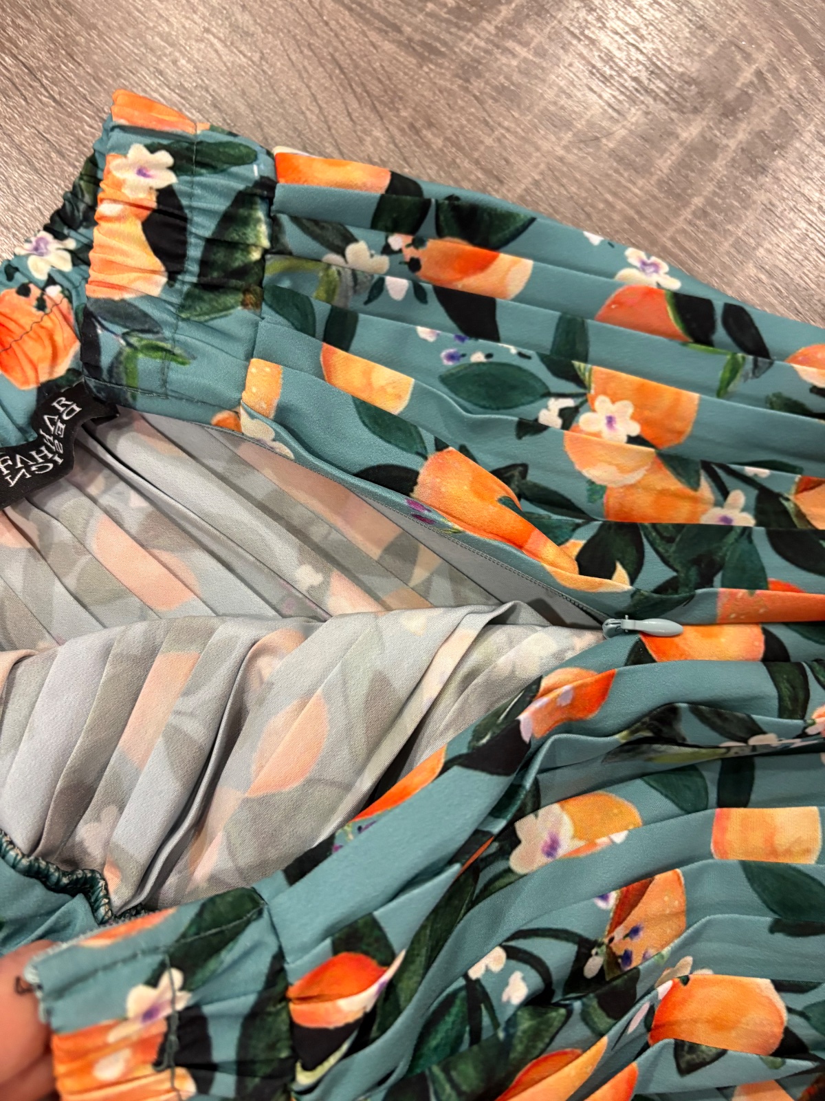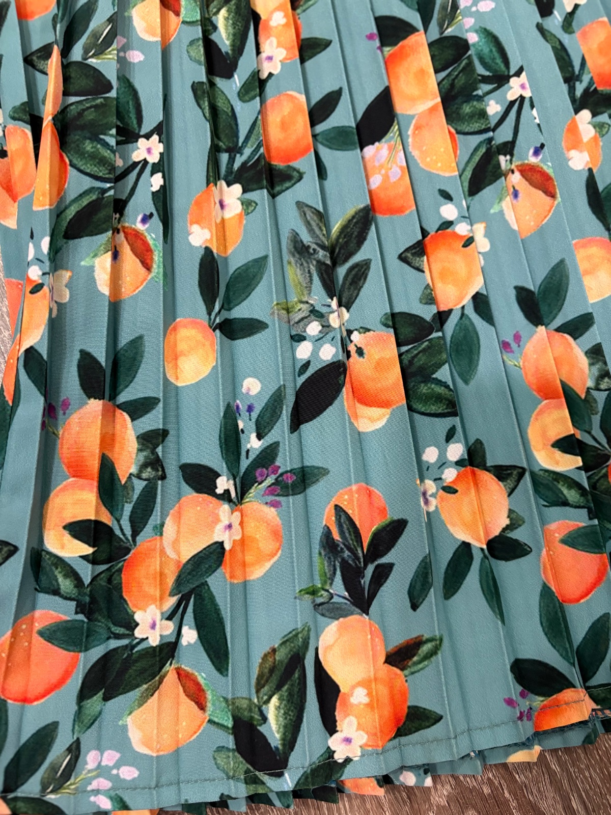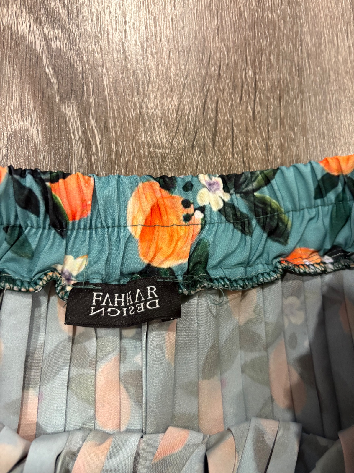 014.Fahhar design špickova damska farba s ovocím, hit roka.Elasticka , velkost M,v boku je zips,dlzka sukne je 96 cm,sirka v pase je od 34x2cm do 46x2cm