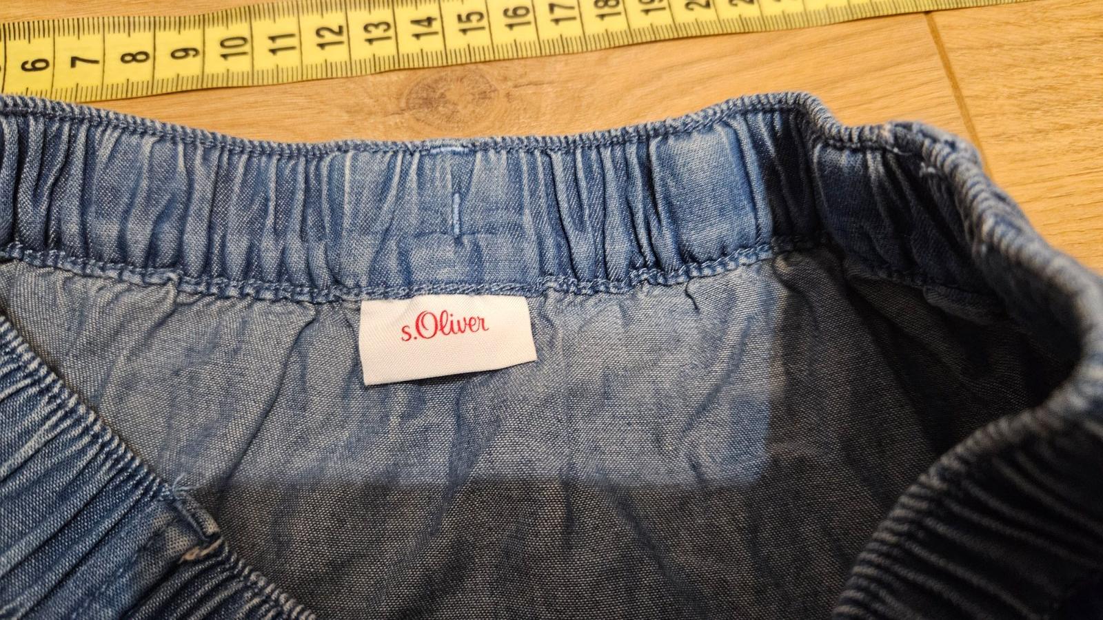 Rifľová sukňa zn. s. Oliver, veľkosť 128. Kupovaná nová, min.nosená max. 3x. Rozmery a zloženie na fotkách.