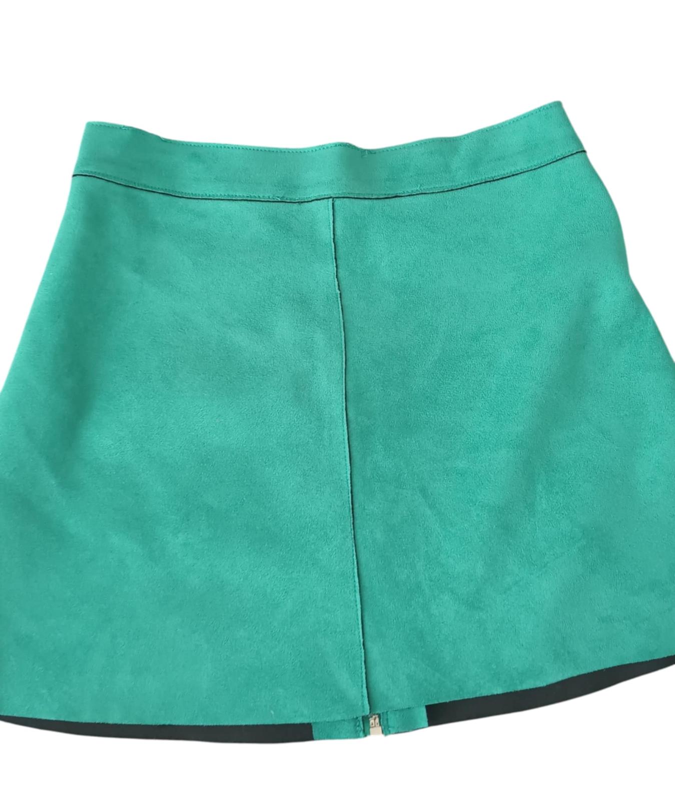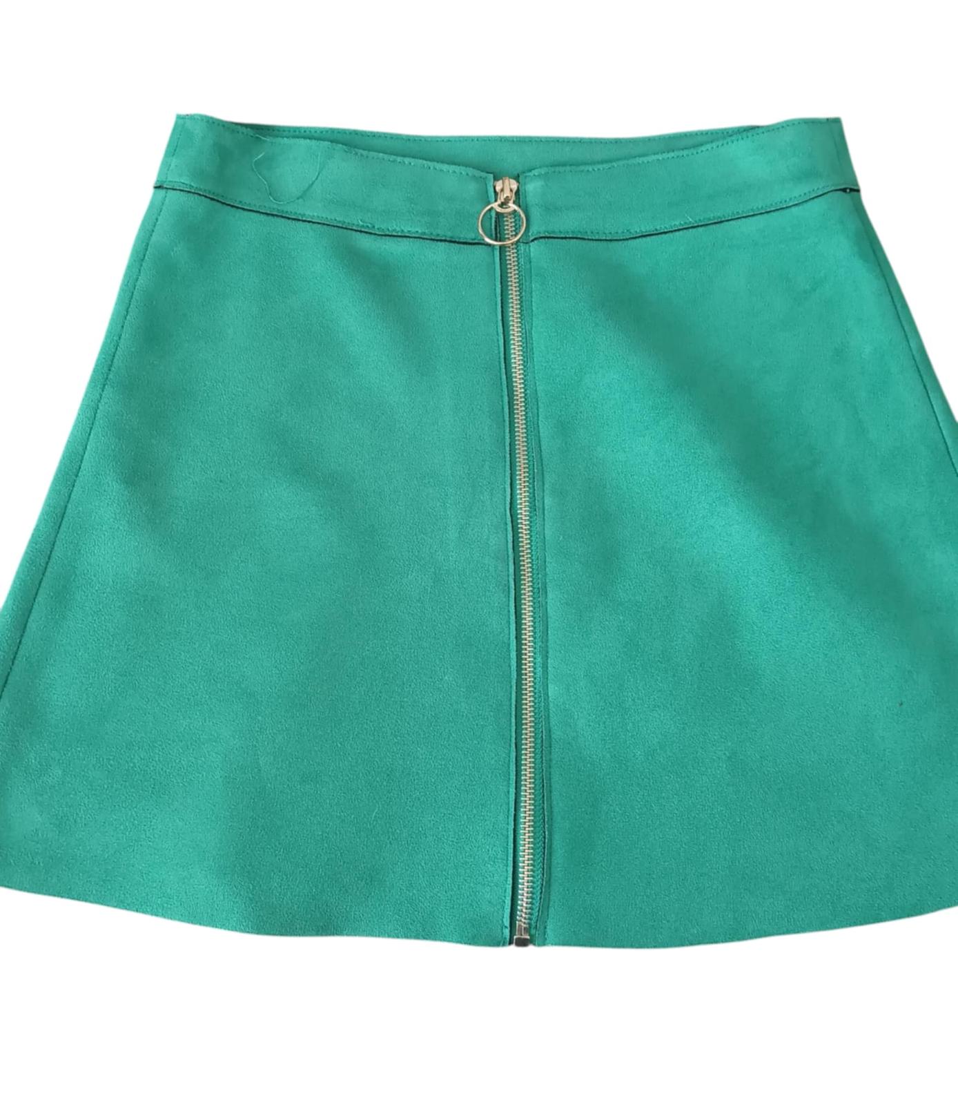 Krásna zelená farba,v páse sa trošku pára pozri foto,stačí ručne zašiť,zips je v predu,mierne do A