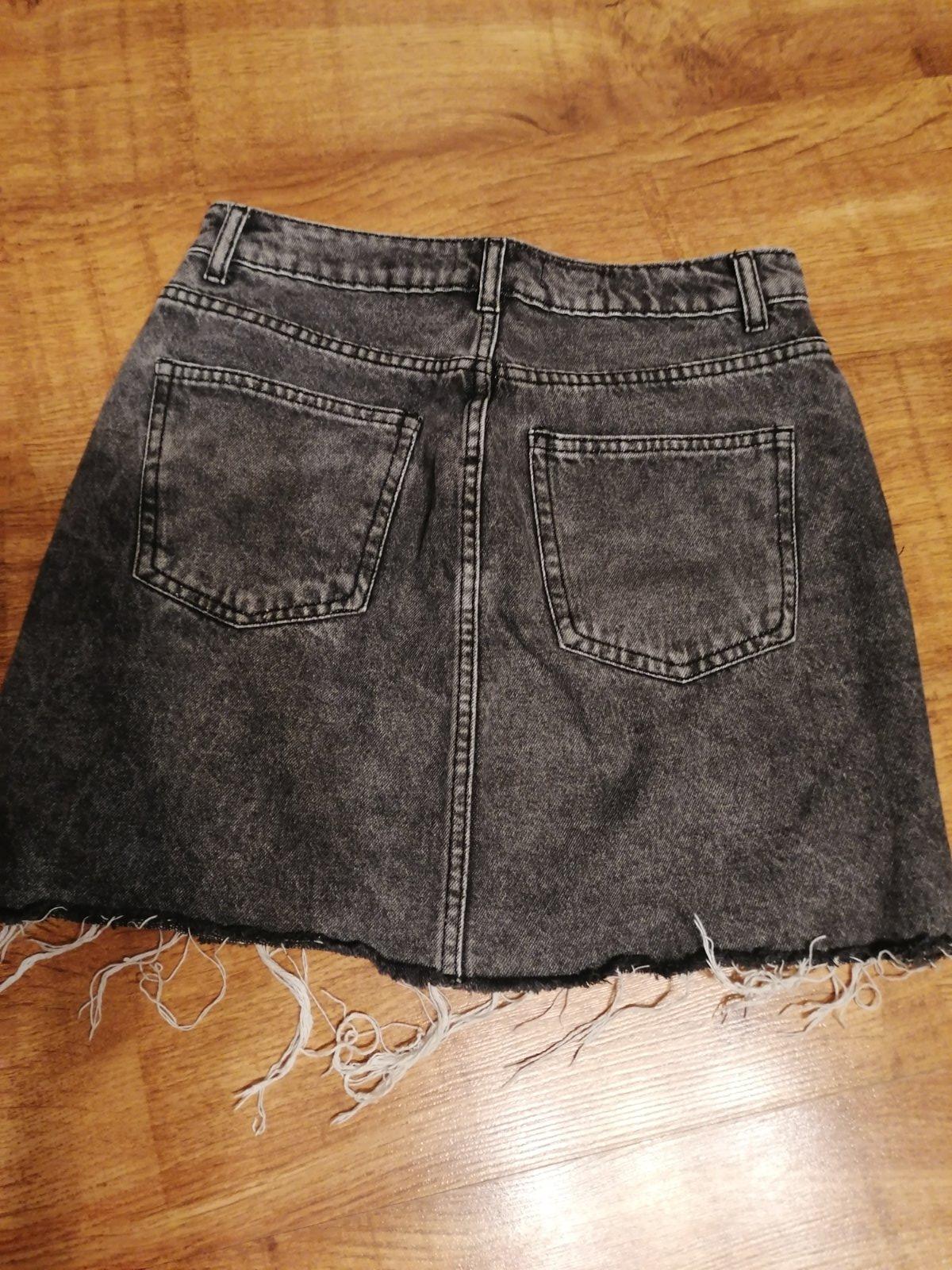 Pekná riflová klasická sukňa, veľkosť S. Celková dĺžka je 40cm, pás vpredu na gombík a zips, šírka v páse je 2x37cm. Bez poškodenia.