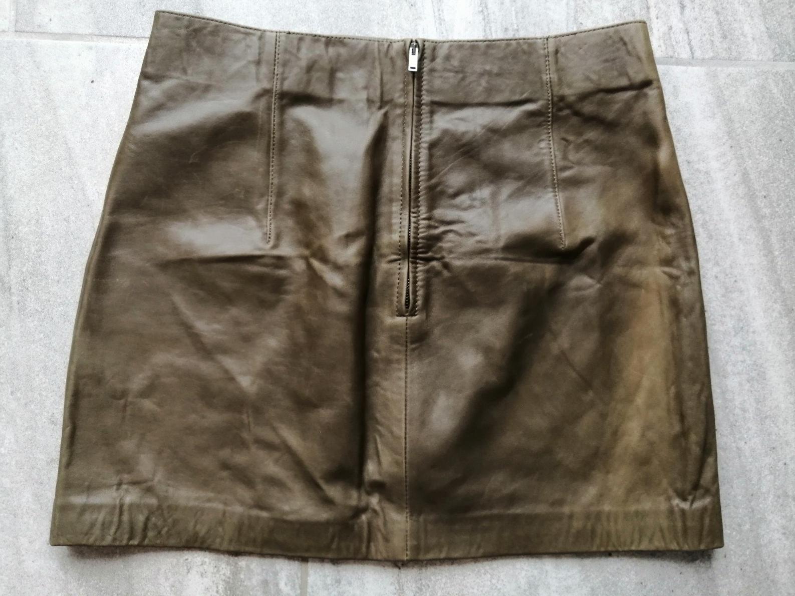 Khaki kožená sukňa ZARA,vL,jahňacina,olivová