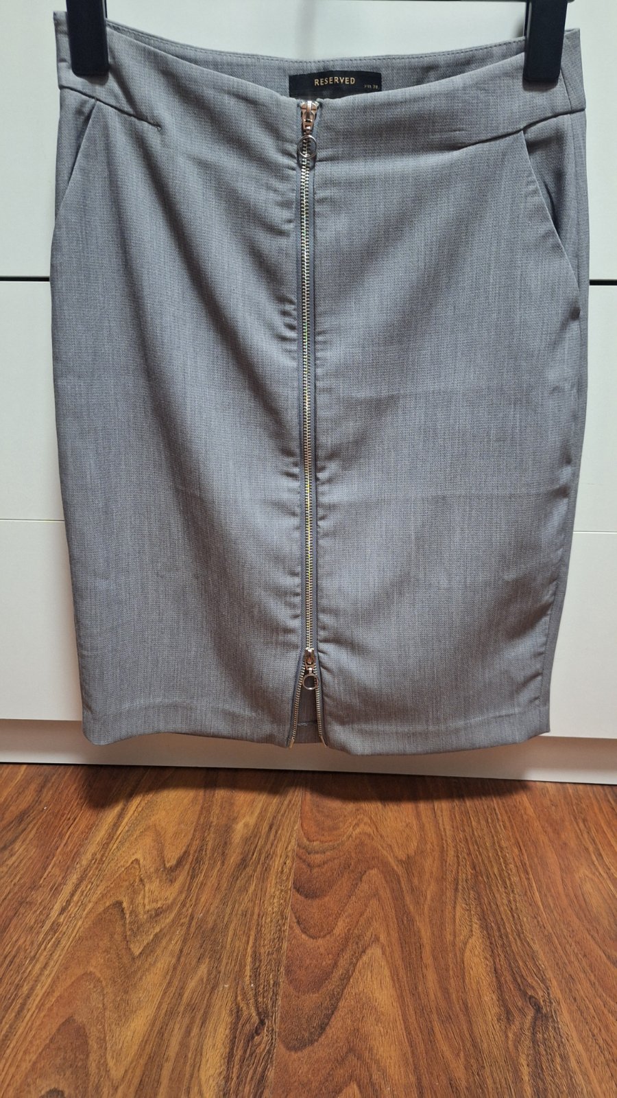 Šedá sukňa vpredu na obojstranný zips. Veľmi dobre sa nosí, má vrecjá.. Je vo velmi dobrom stace. Symbolická cena 6€, 😁