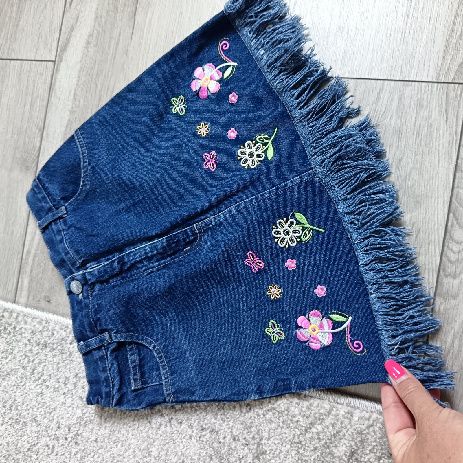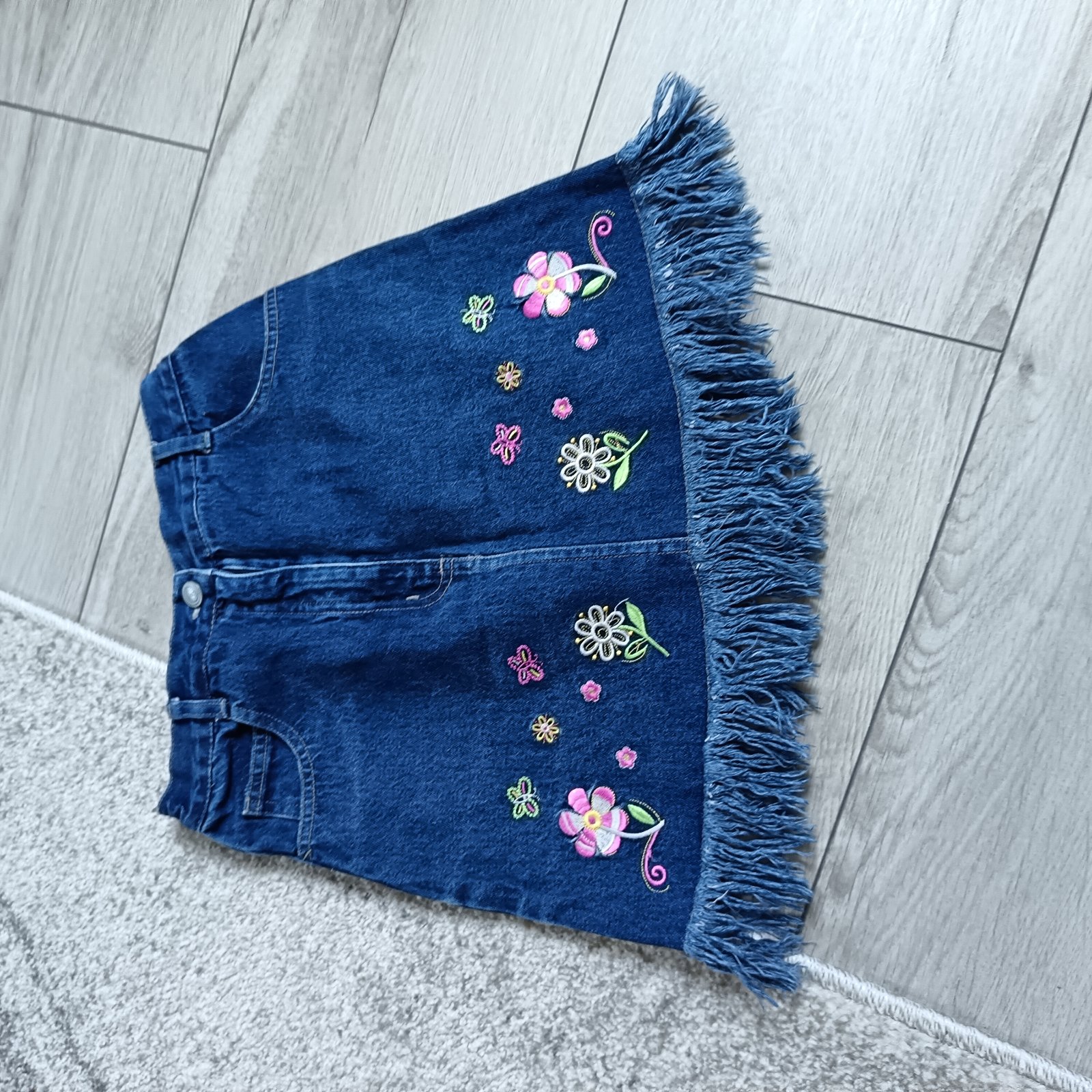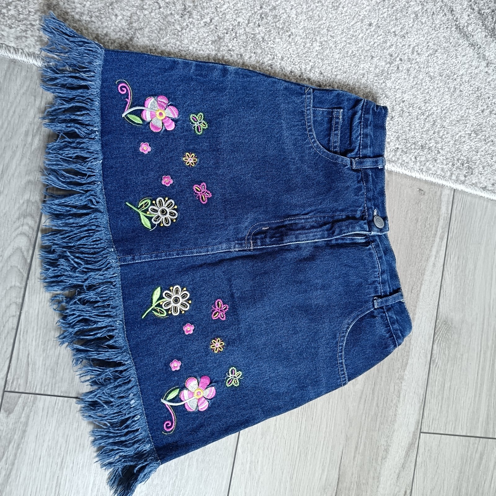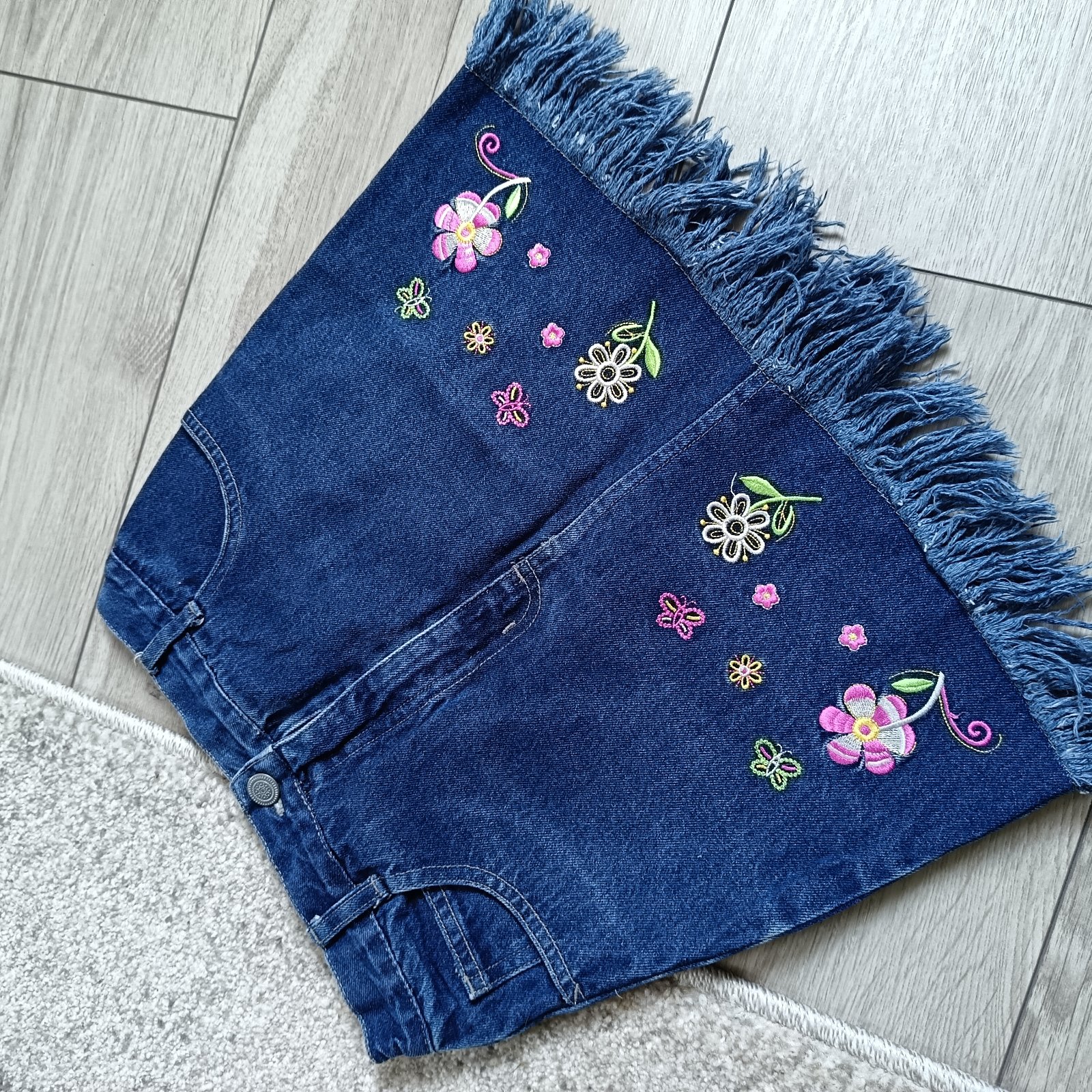 Predám nádhernú rifľovú exluzívnú sukničku s vyšívanými kvetmi.