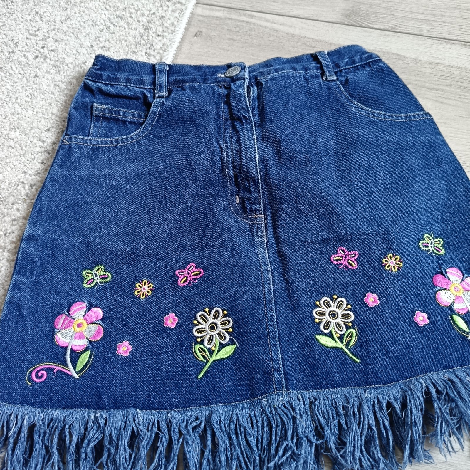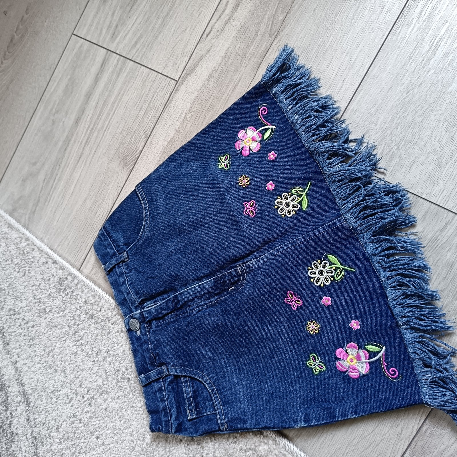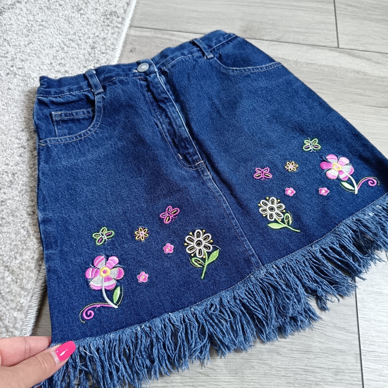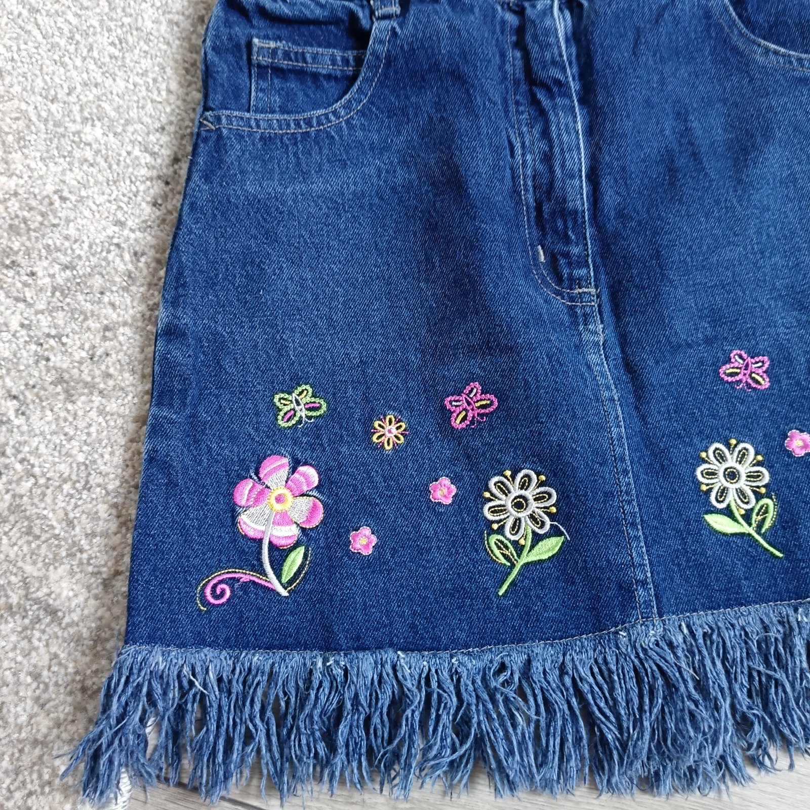 Predám nádhernú rifľovú exluzívnú sukničku s vyšívanými kvetmi.