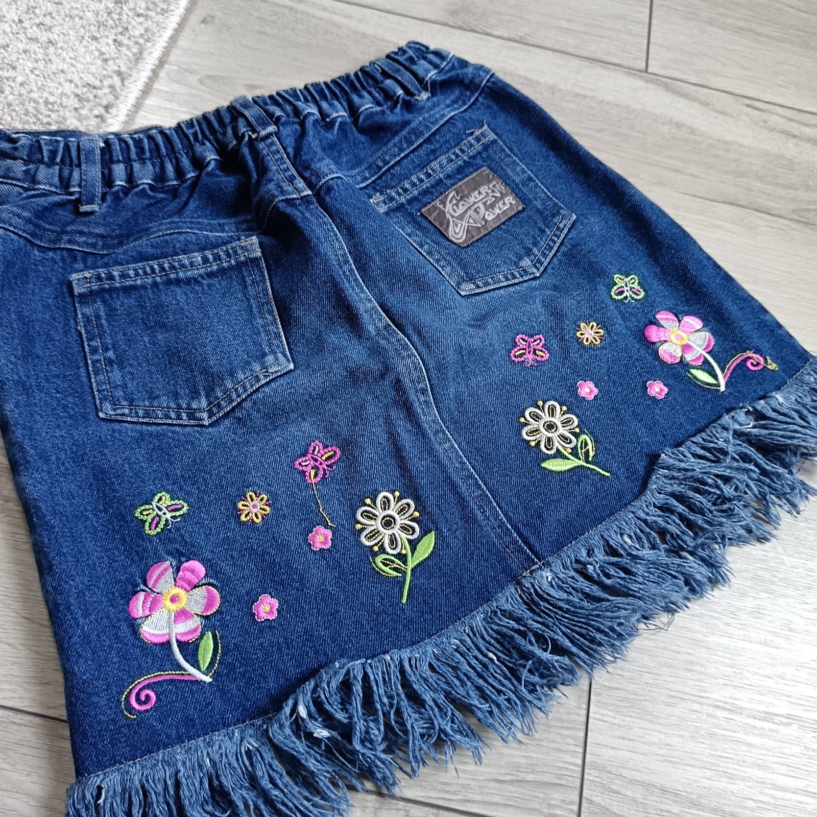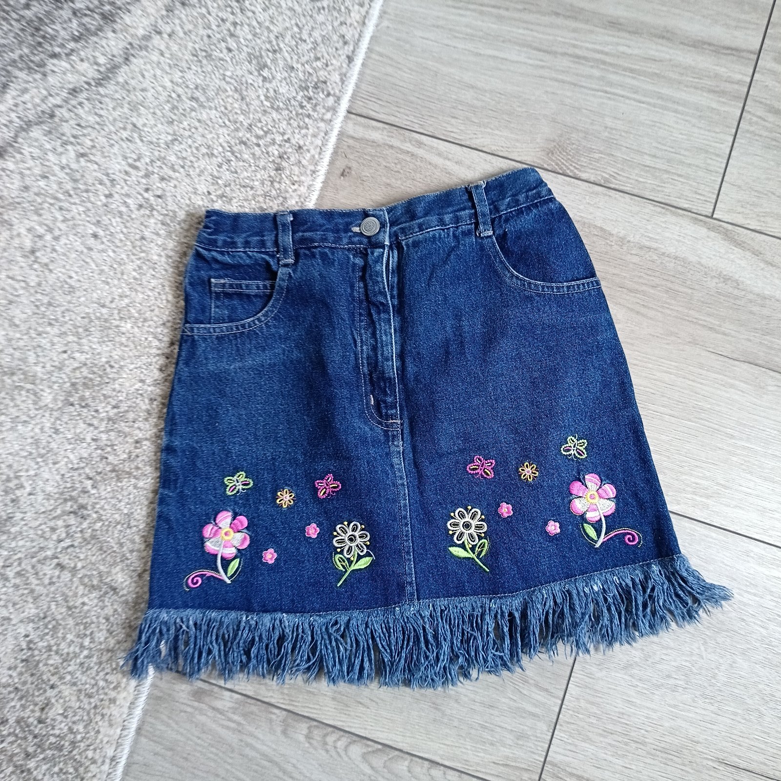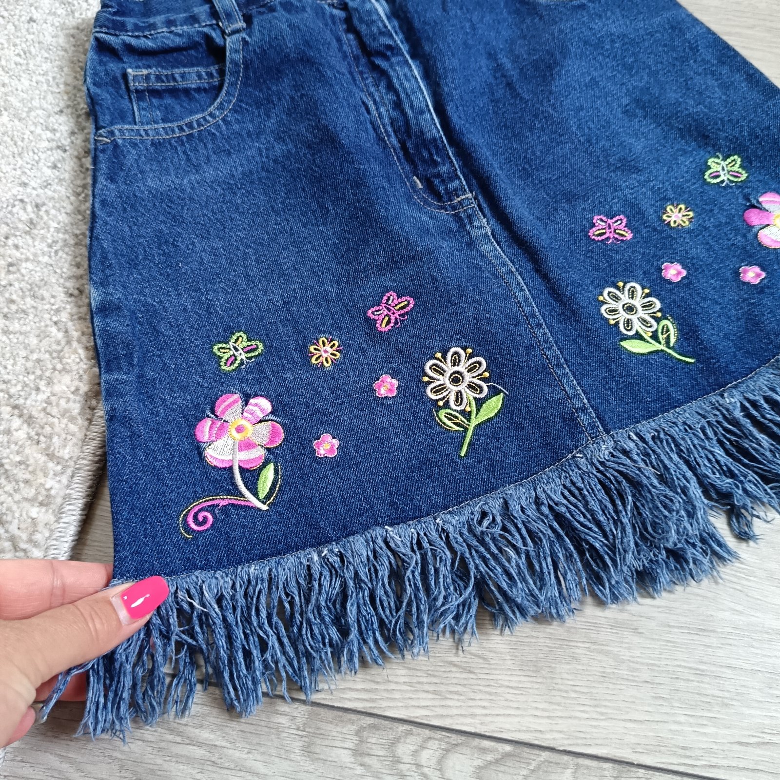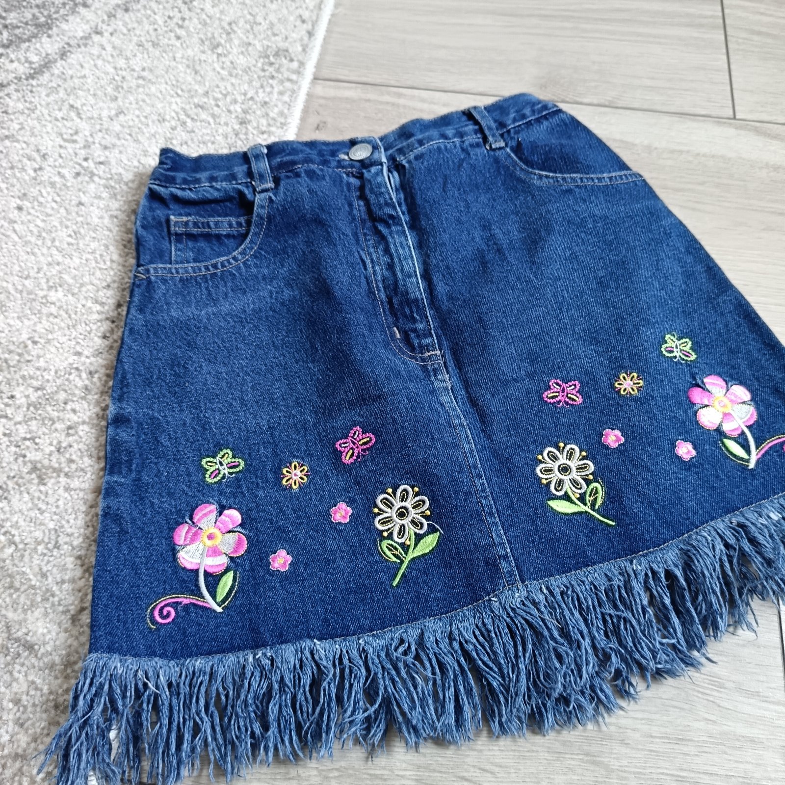 Predám nádhernú rifľovú exluzívnú sukničku s vyšívanými kvetmi.
