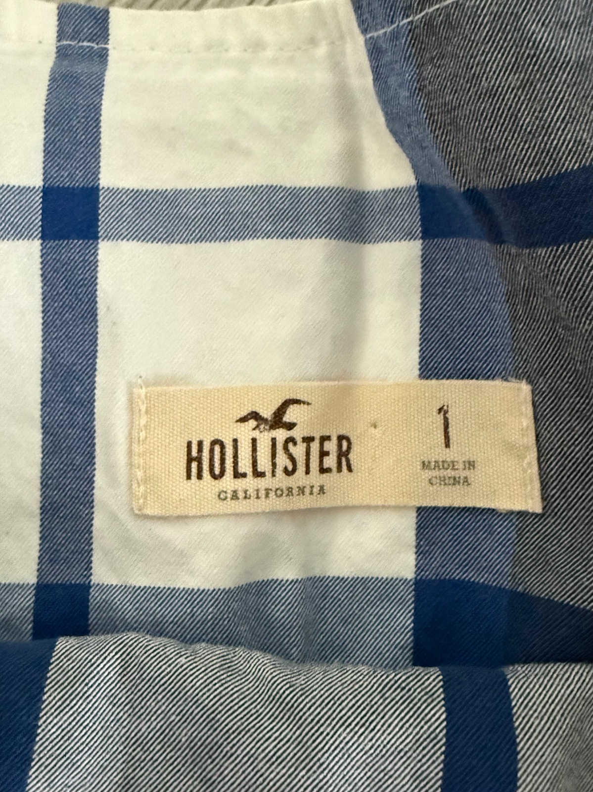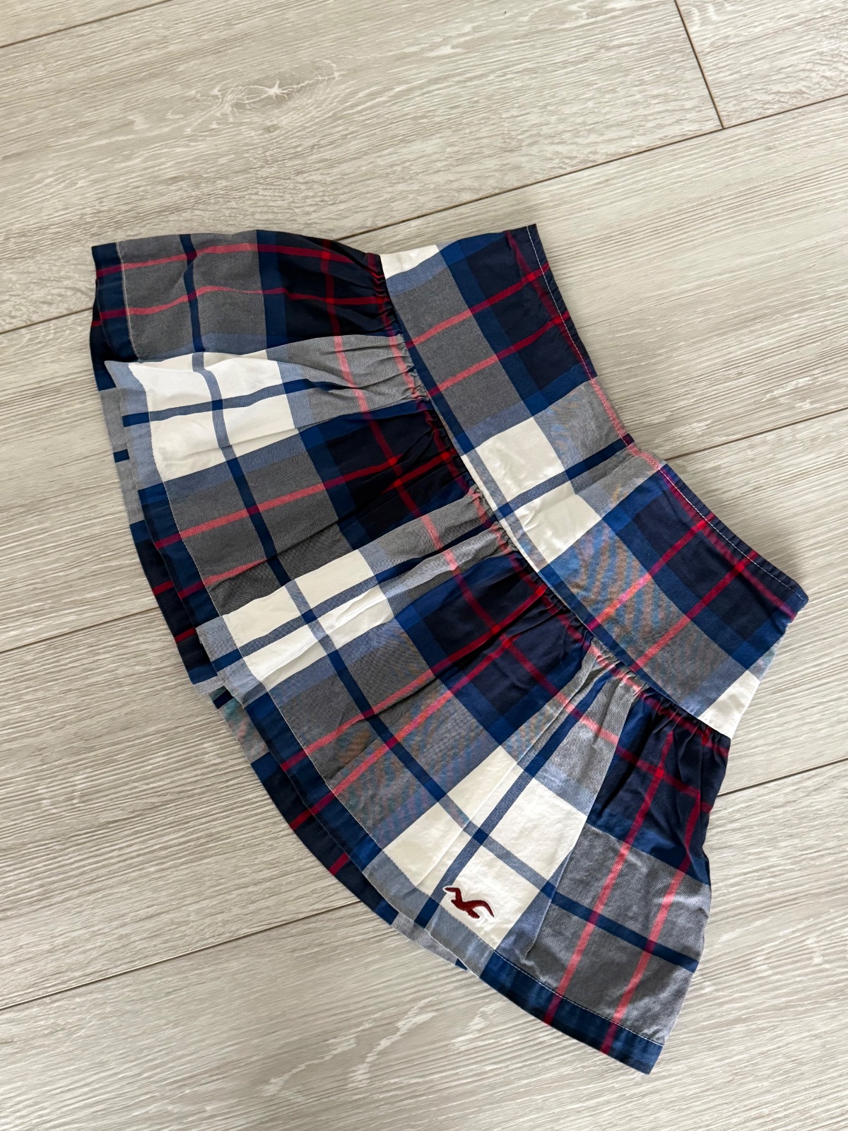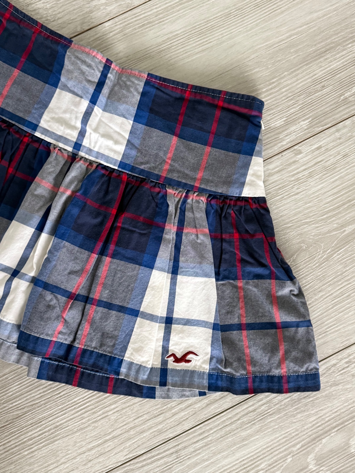 Krásna suknička Hollister. Modro-bielo-červená kombinácia. Na boku zips, podšitá. Velkost 1, sedí S-XS. Miaery:pas-36, dĺžka 33 cm.