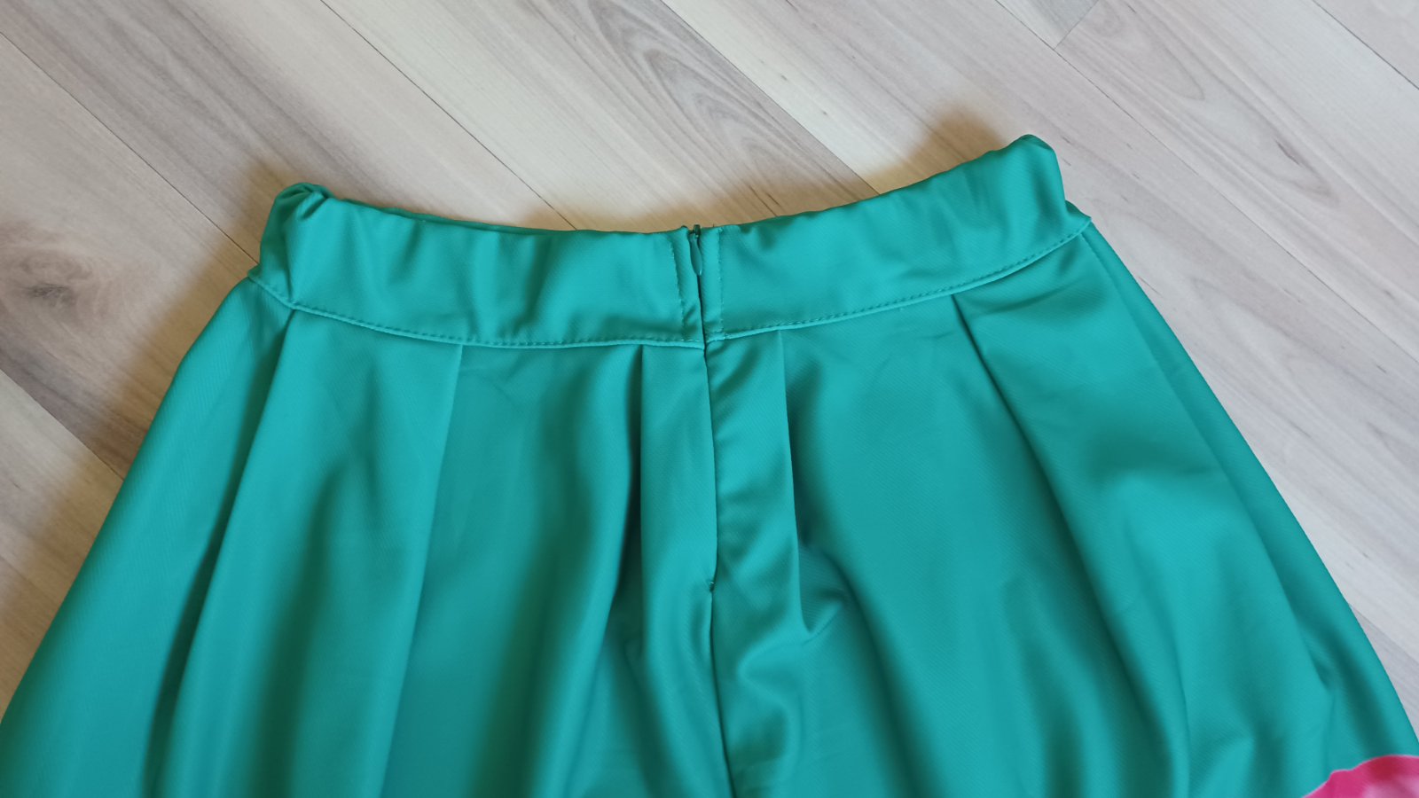 Šírka v páse je 33cm, je tam guma a vzadu zips
