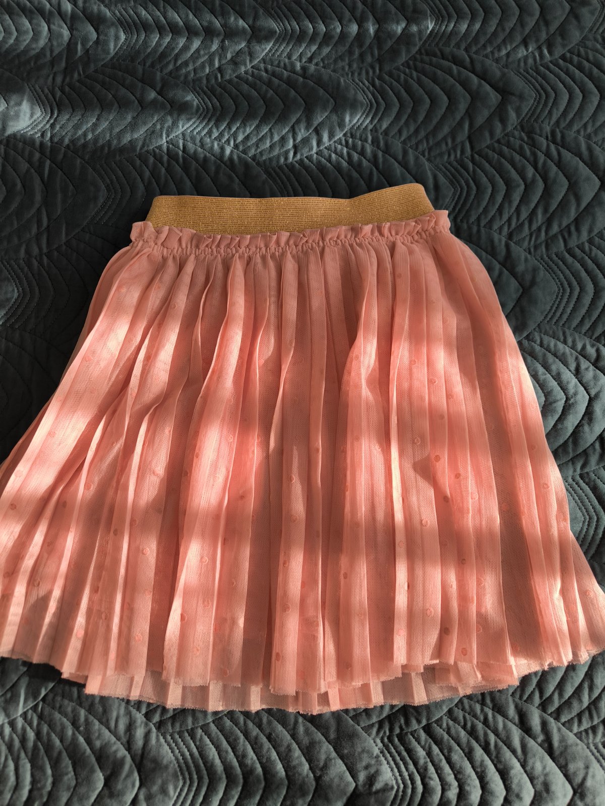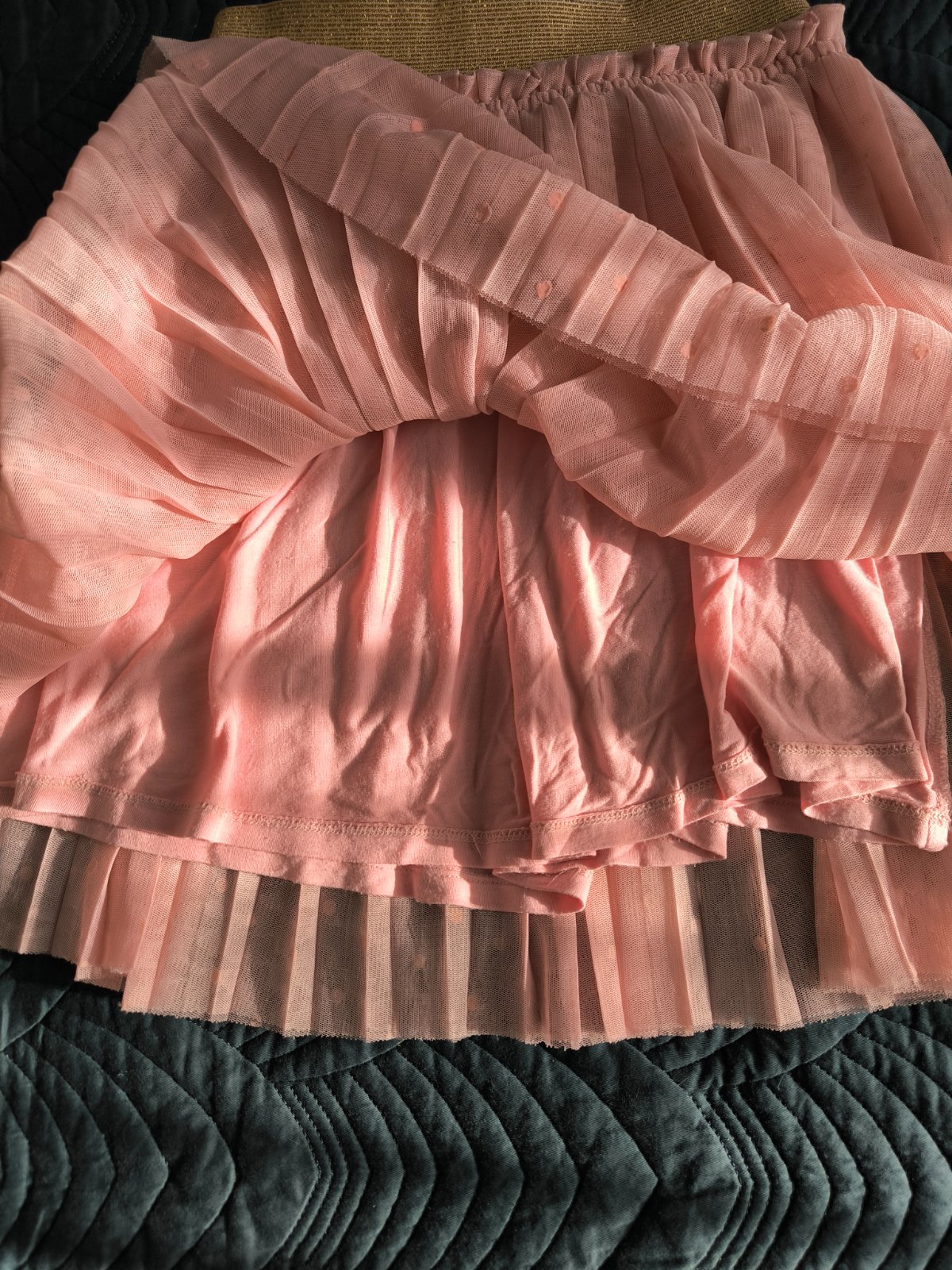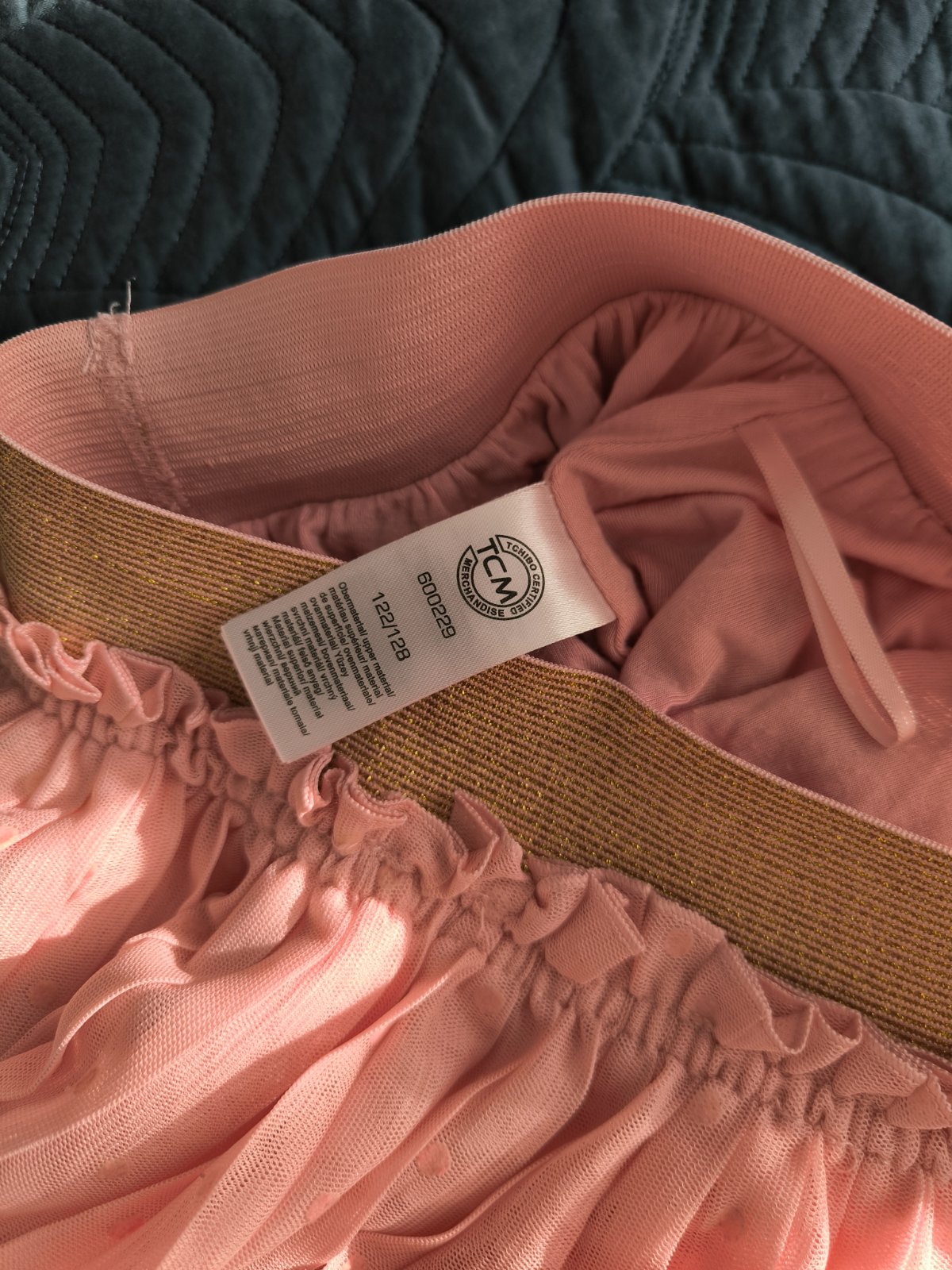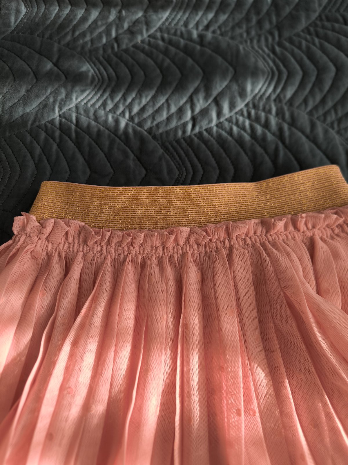 Ponúkam na predaj krásnu tylovú sukňu značky Tchibo. Sukňa nosená minimálne, v TOP stave, veľkosť 122/128, ružová farba so zlatým pásom, spodnička nepriehľadná, po celej sukni bodky. Cena 10 EUR.