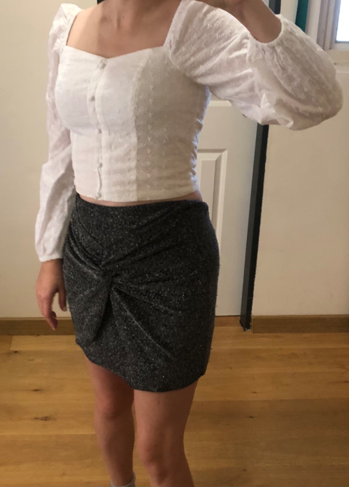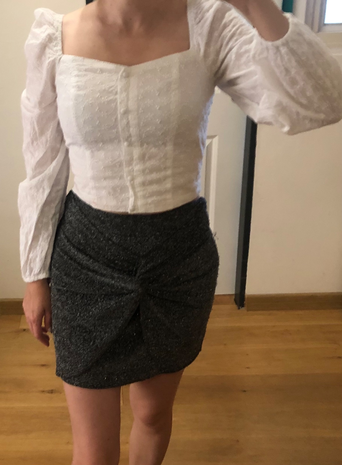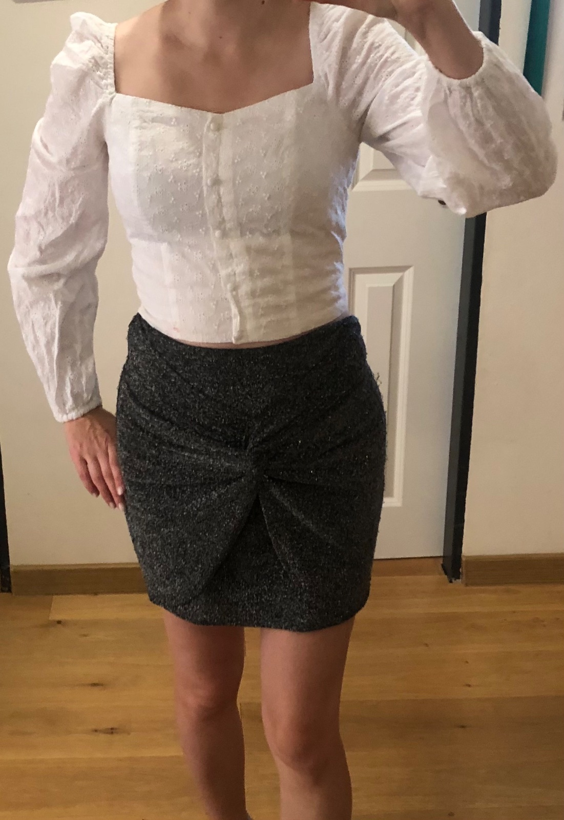 - nosená čierna trblietavá sukňa