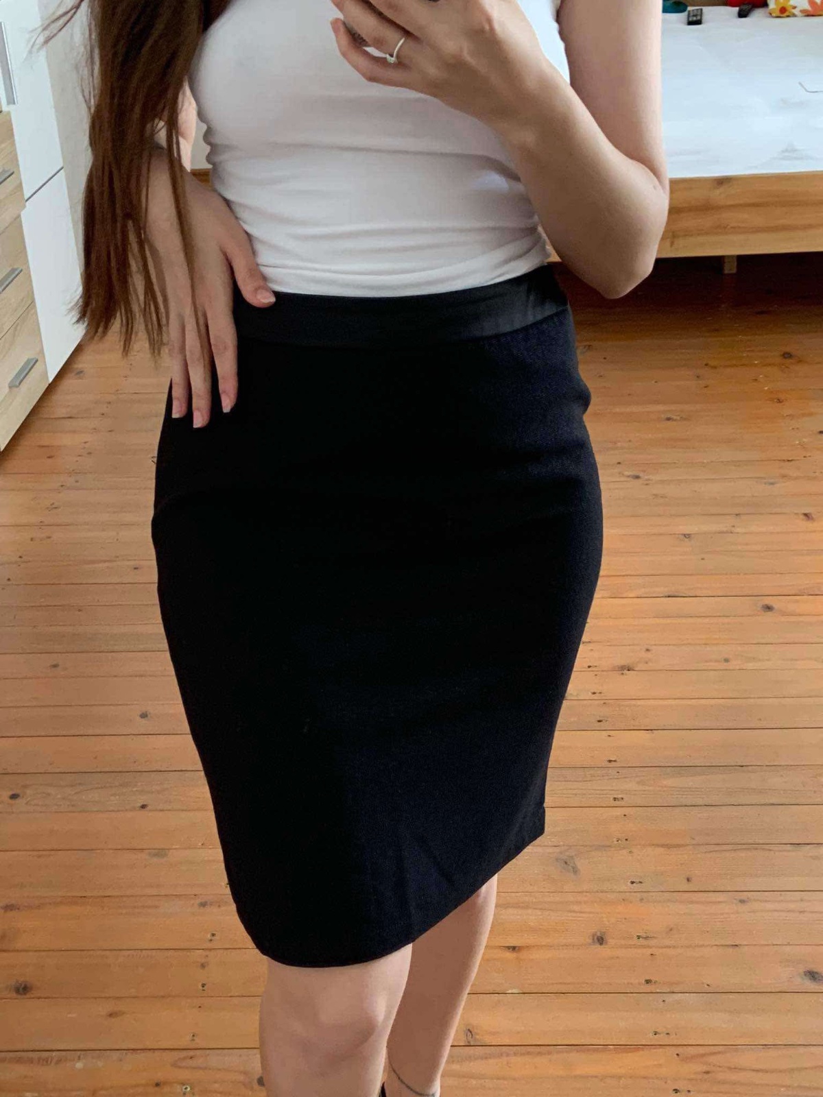 Čierna sukňa pod kolená so širokým pásom